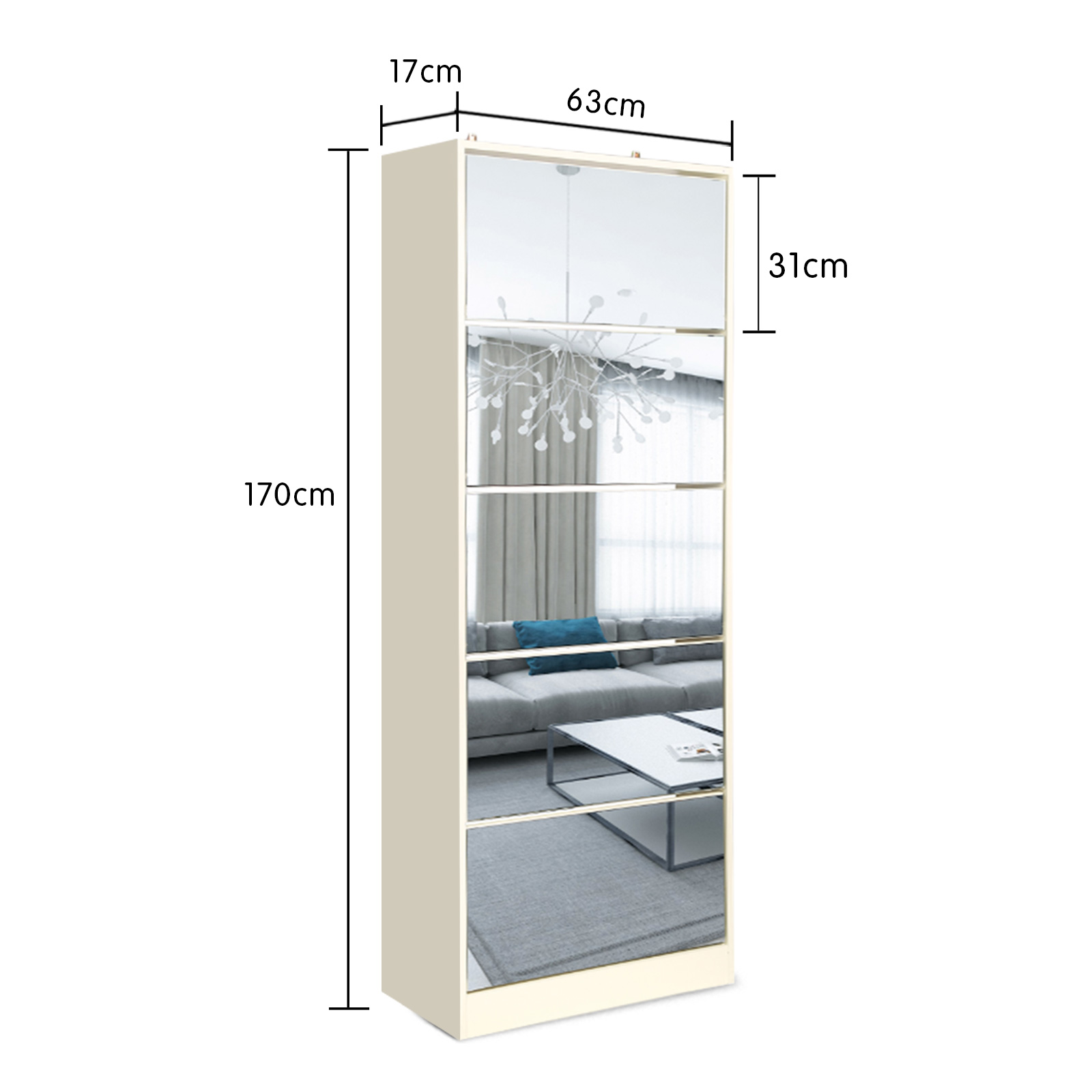 - Type: Mirrored Shoe Cabinet