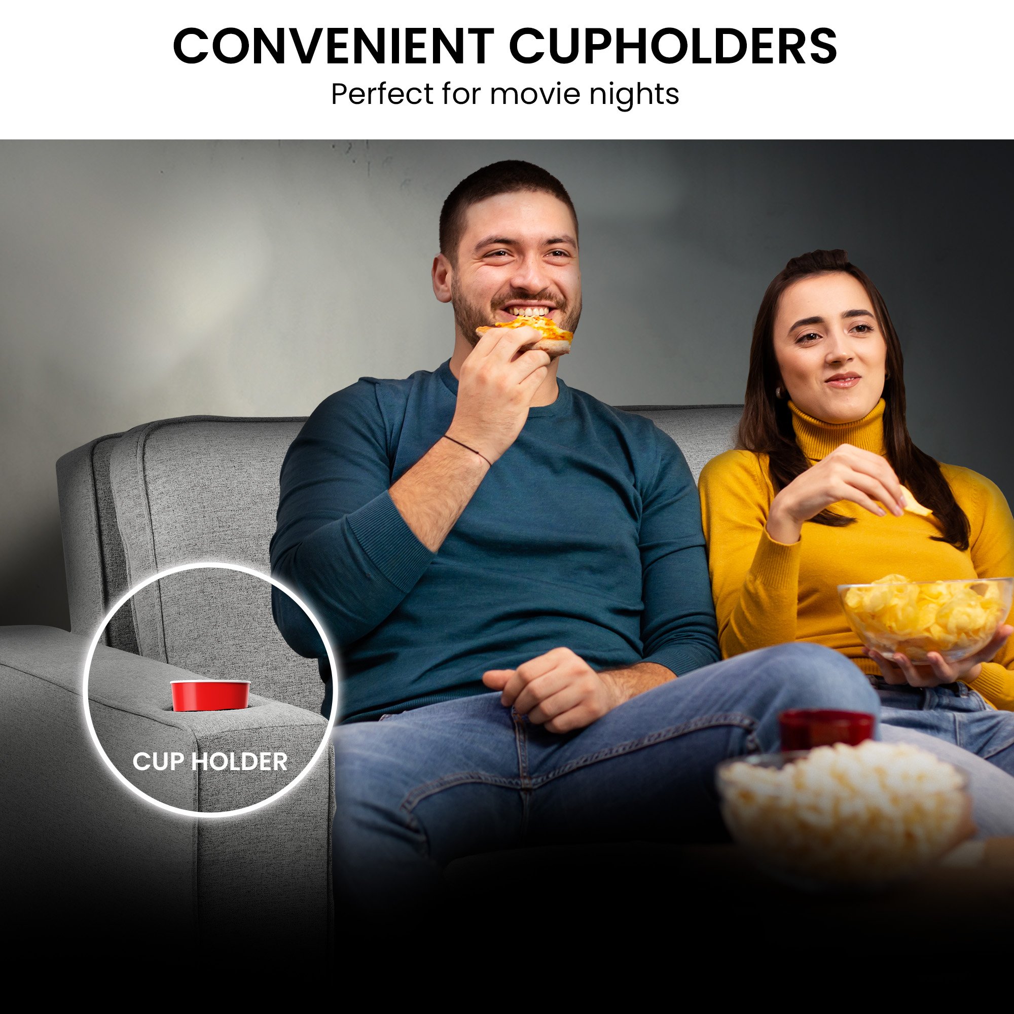 Sarantino Hoffman Linen Sofa Bed Chair With Cushions &cup Holders Light Grey