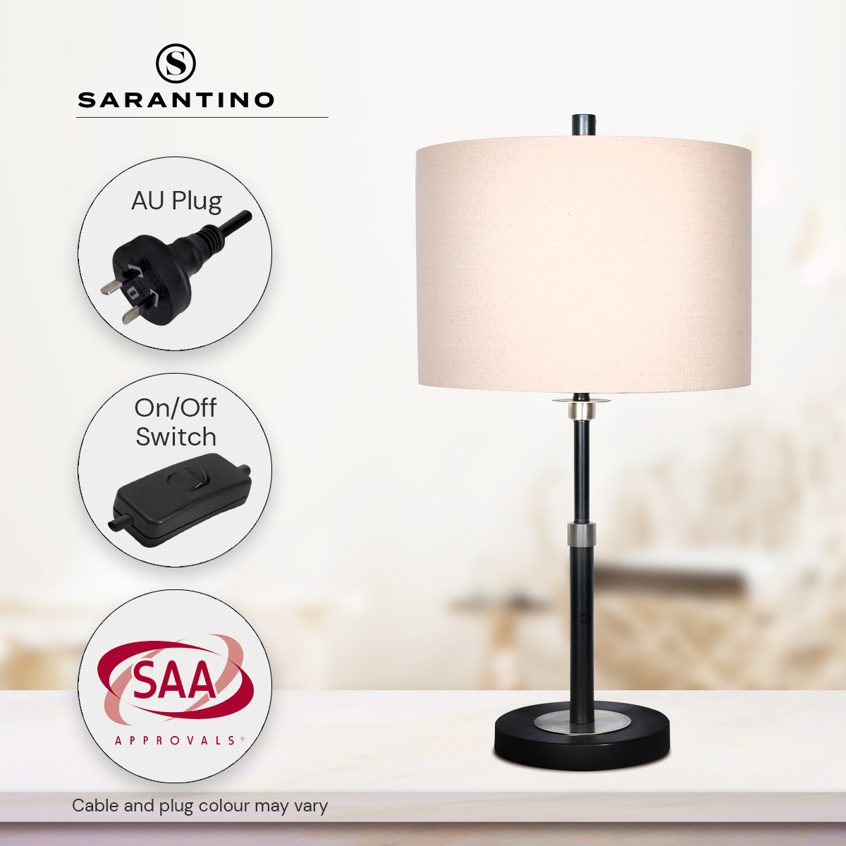 With its black metal and brushed nickel finish, this table lamp is an eye-catcher in any room. Its cream linen drum shade is attractive and elegant, perfect for a wide variety of interiors. This lamp is a great choice for the living room, bedroom, office or study.