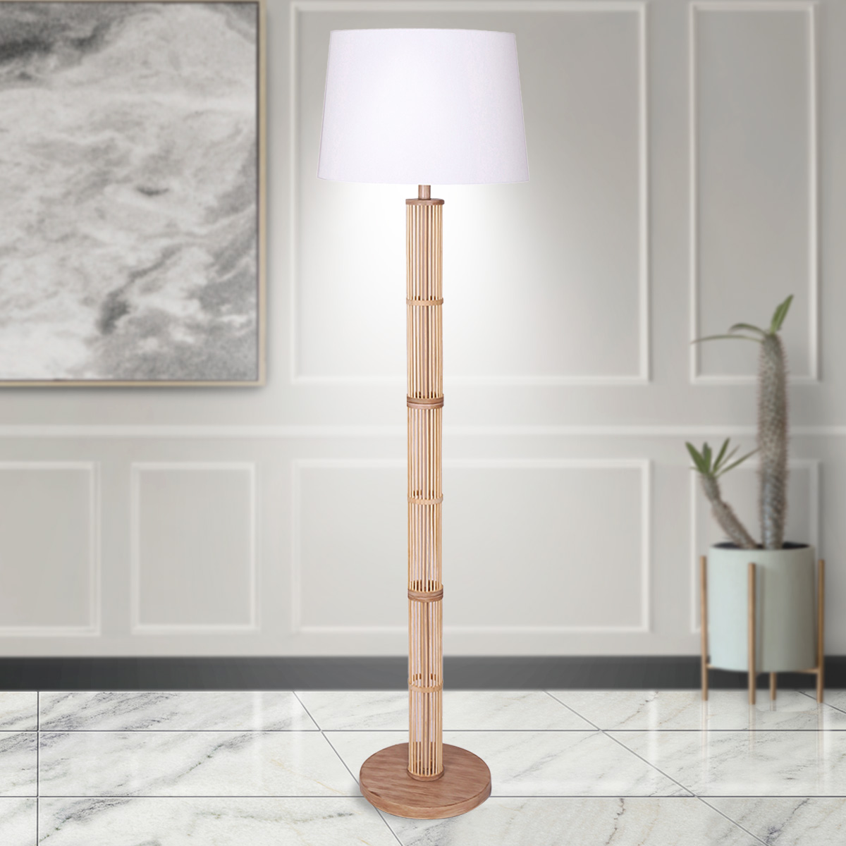 Sarantino Rattan Floor Lamp With Ghost-White Linen Shade