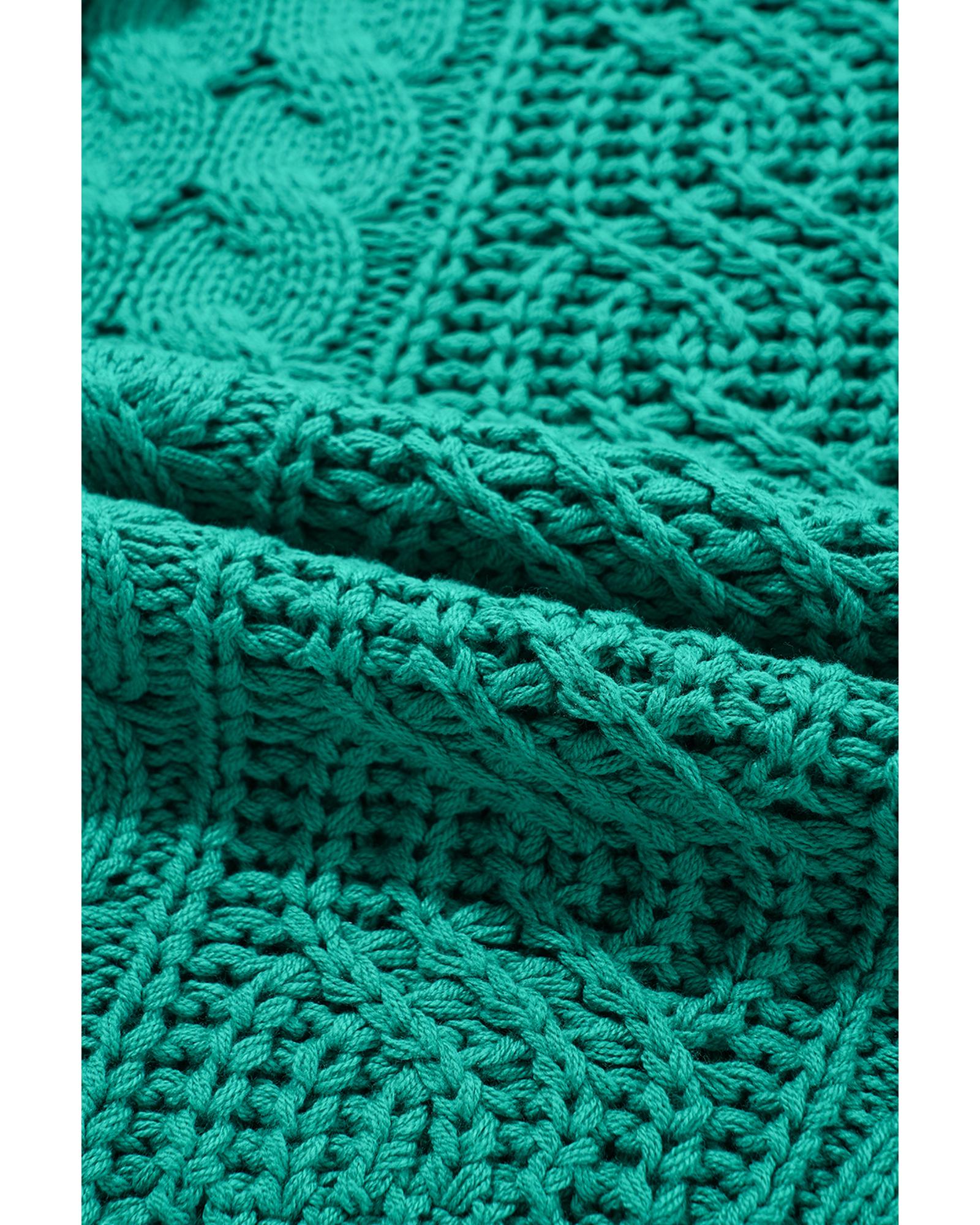 - Sea Green Cable Knit V Neck Contrast Drawstring Hooded Sweater