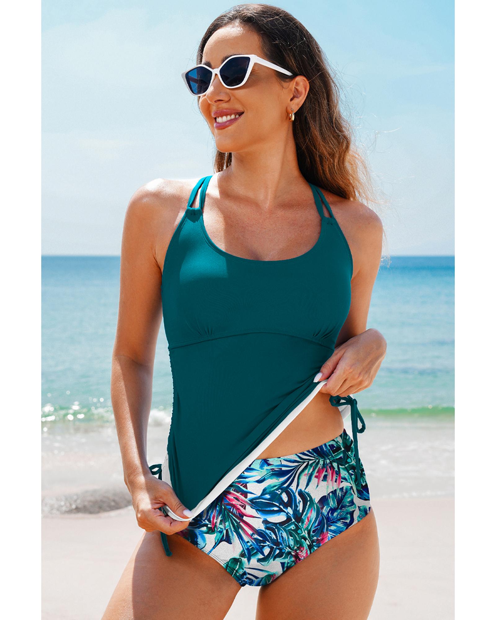 Sea Green Drawstring Tummy Control Mix-and-match 2pcs Tankini Swimsuit – L