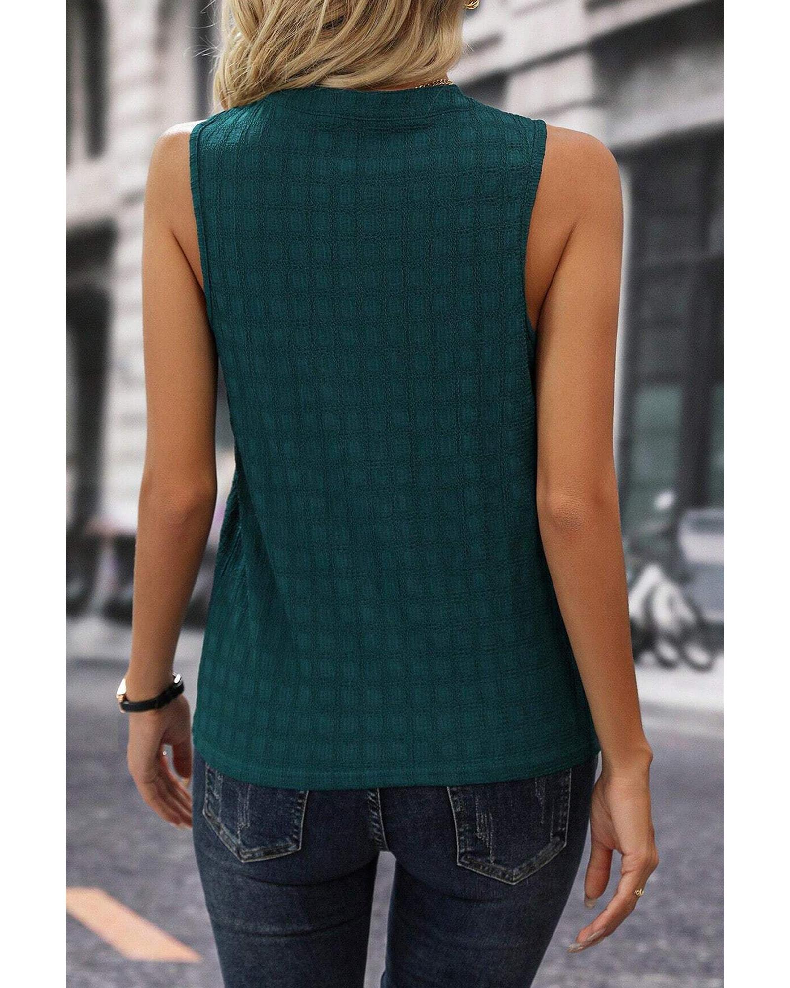 Sea Green Lattice Textured Split Neck Tank Top – M