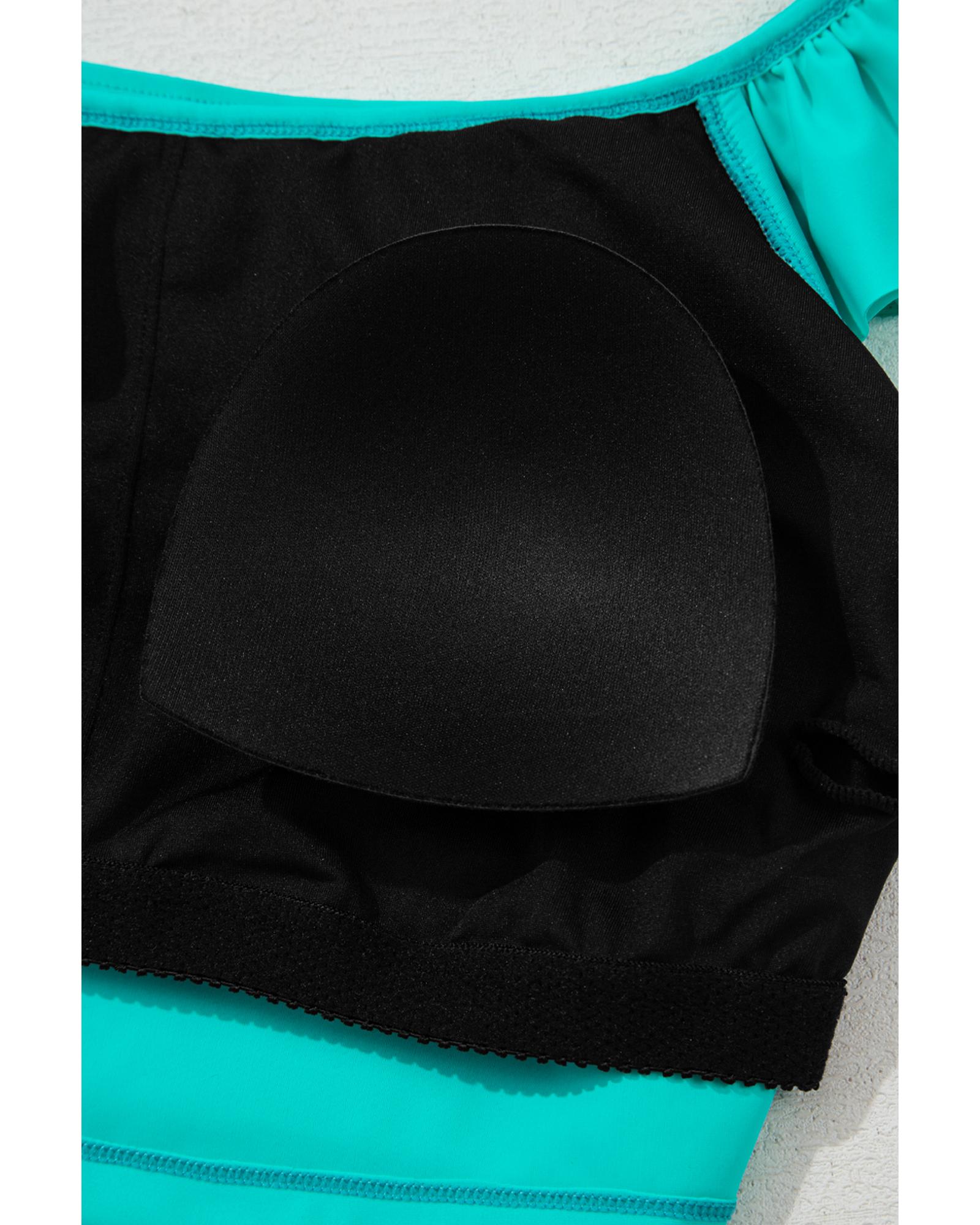 - Sea Green Solid Ruffled Square Neck Swim Top