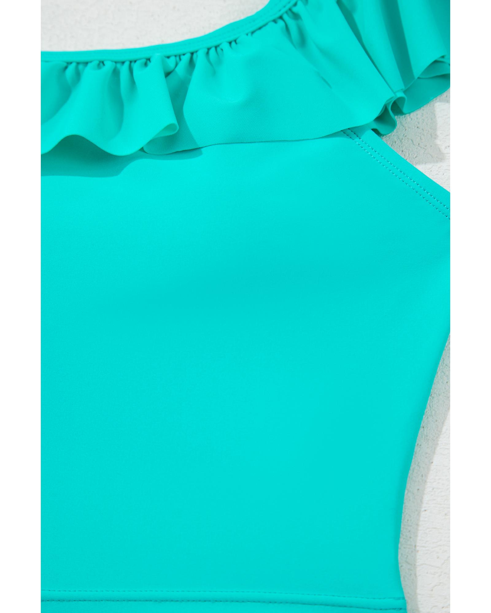 - Sea Green Solid Ruffled Square Neck Swim Top