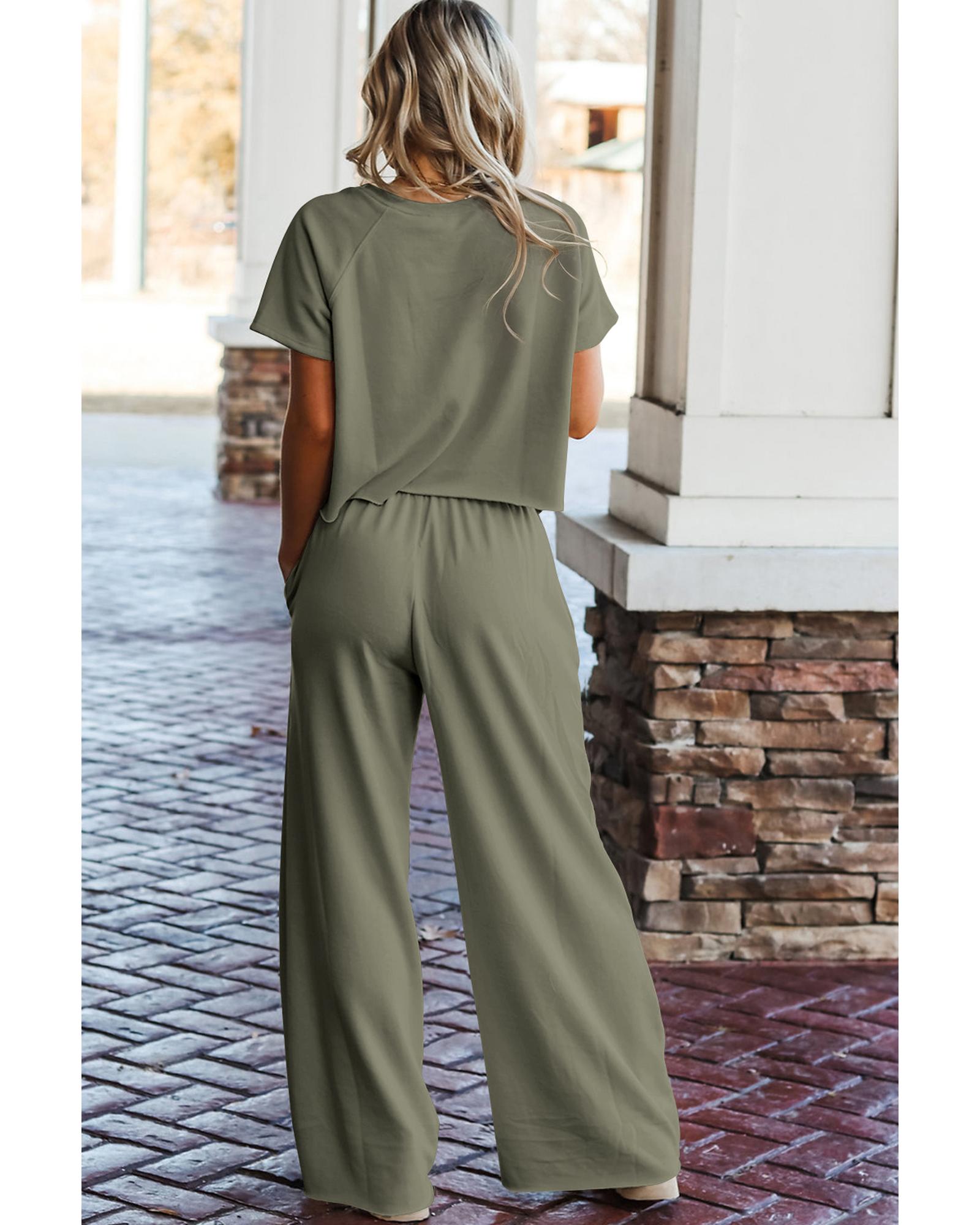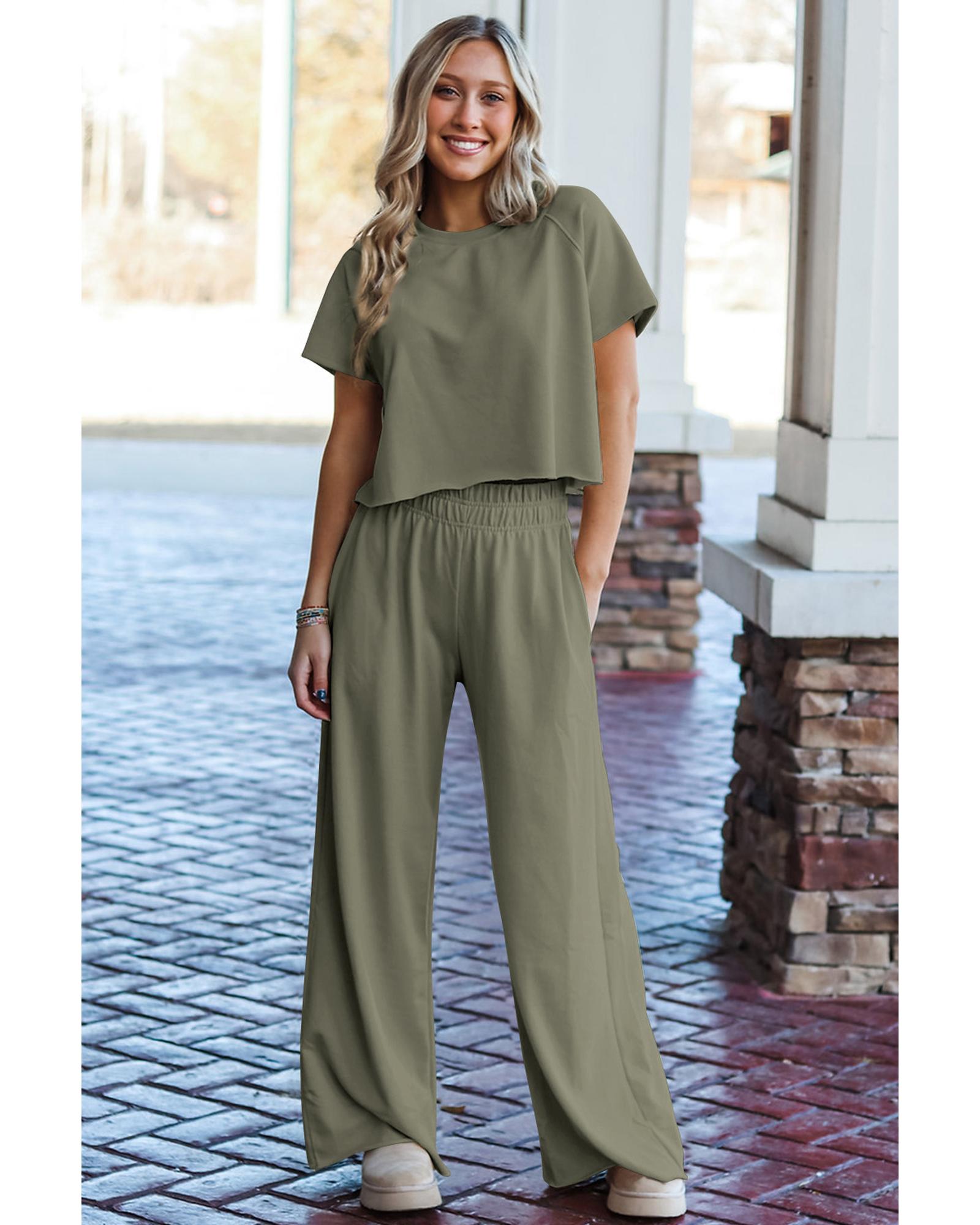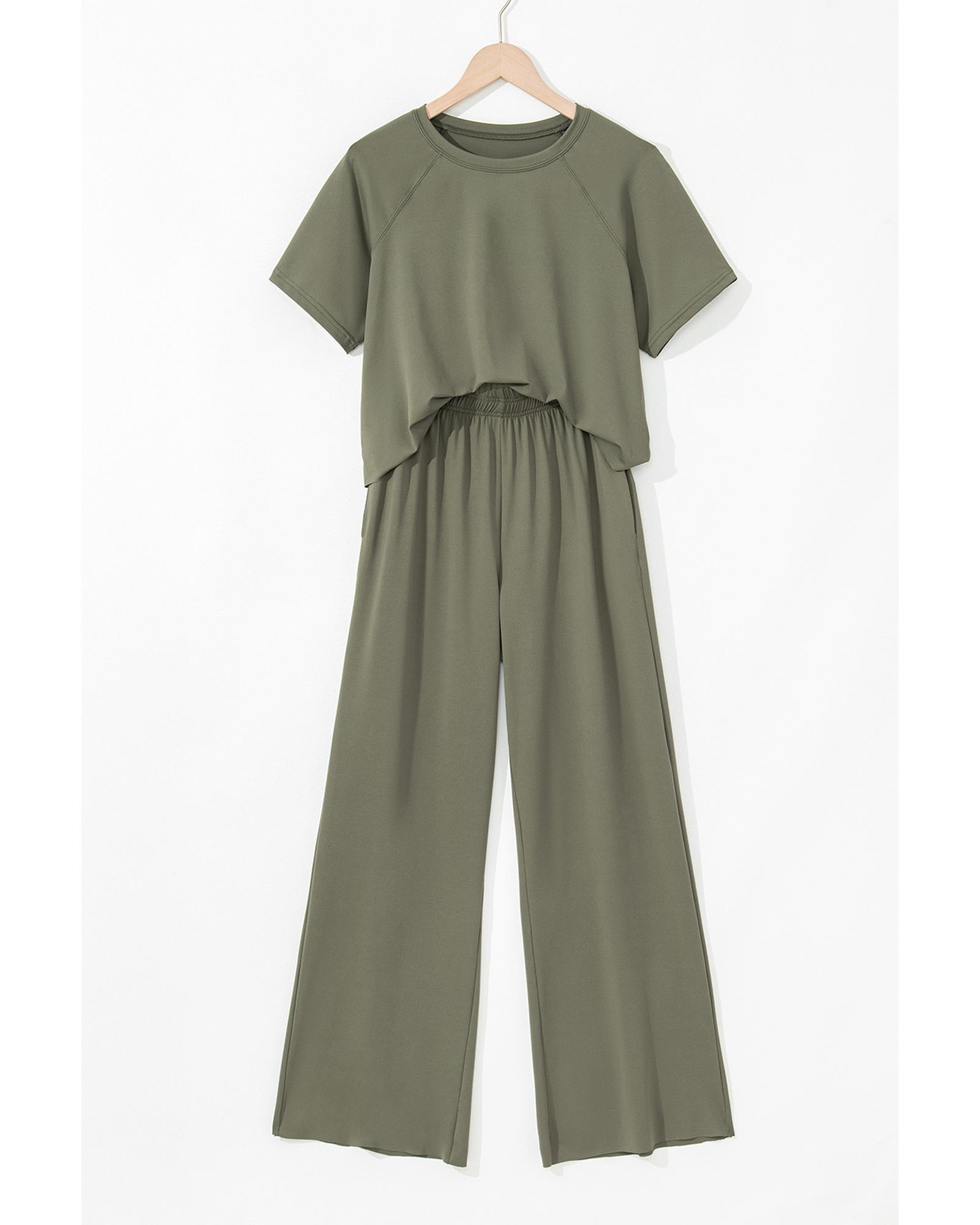 Seagrass Raw Hem Loose Tee and Wide Leg Pants Set – XL