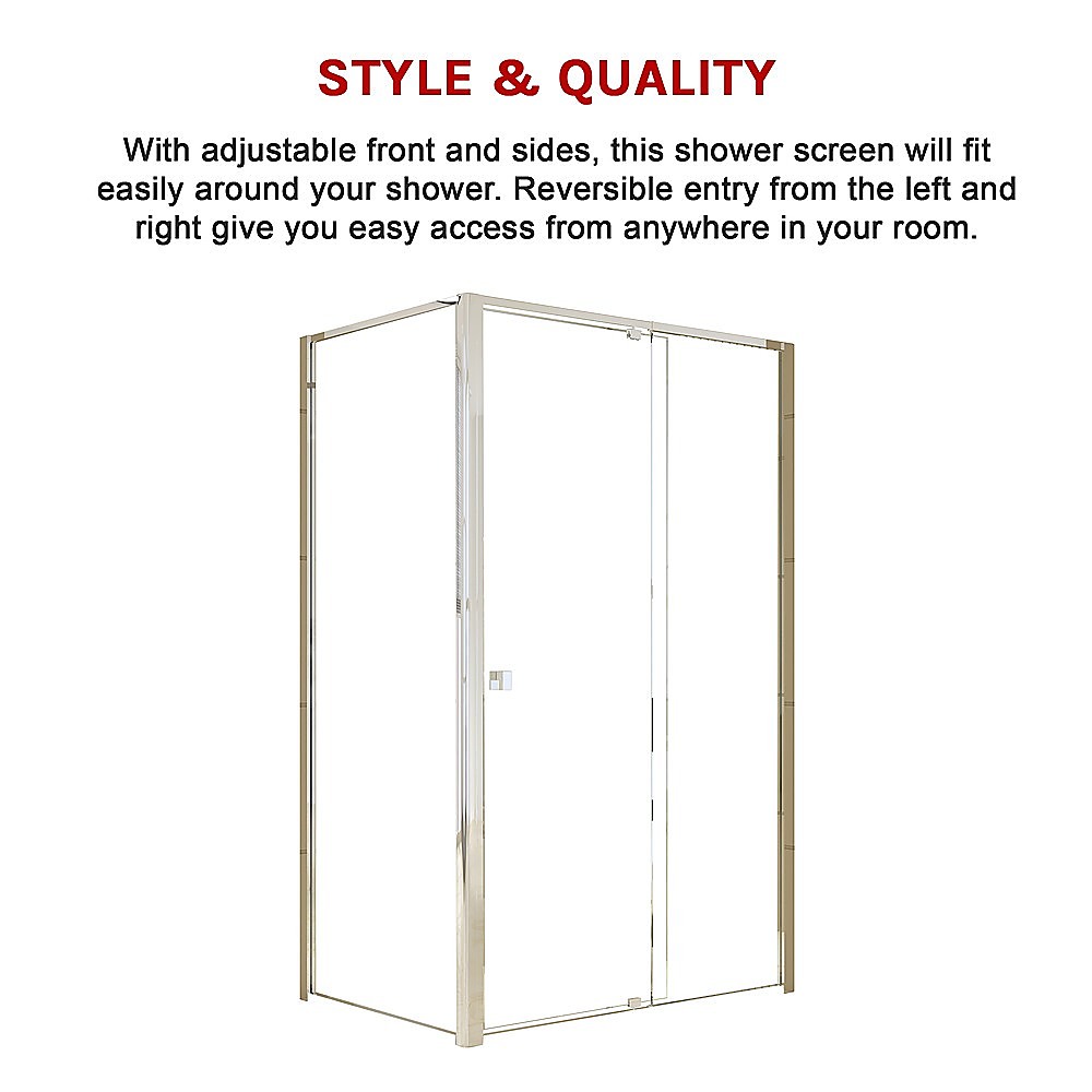 With adjustable front and sides, this shower screen will fit easily around your shower. Reversible entry from the left and right give you easy access from anywhere in your room. Make this elegant shower screen the centrepiece of your bathroom today.