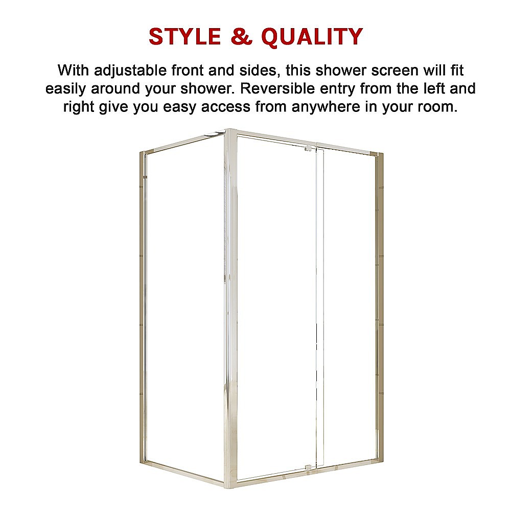 With adjustable front and sides, this shower screen will fit easily around your shower. Reversible entry from the left and right give you easy access from anywhere in your room. Make this elegant shower screen the centrepiece of your bathroom today.