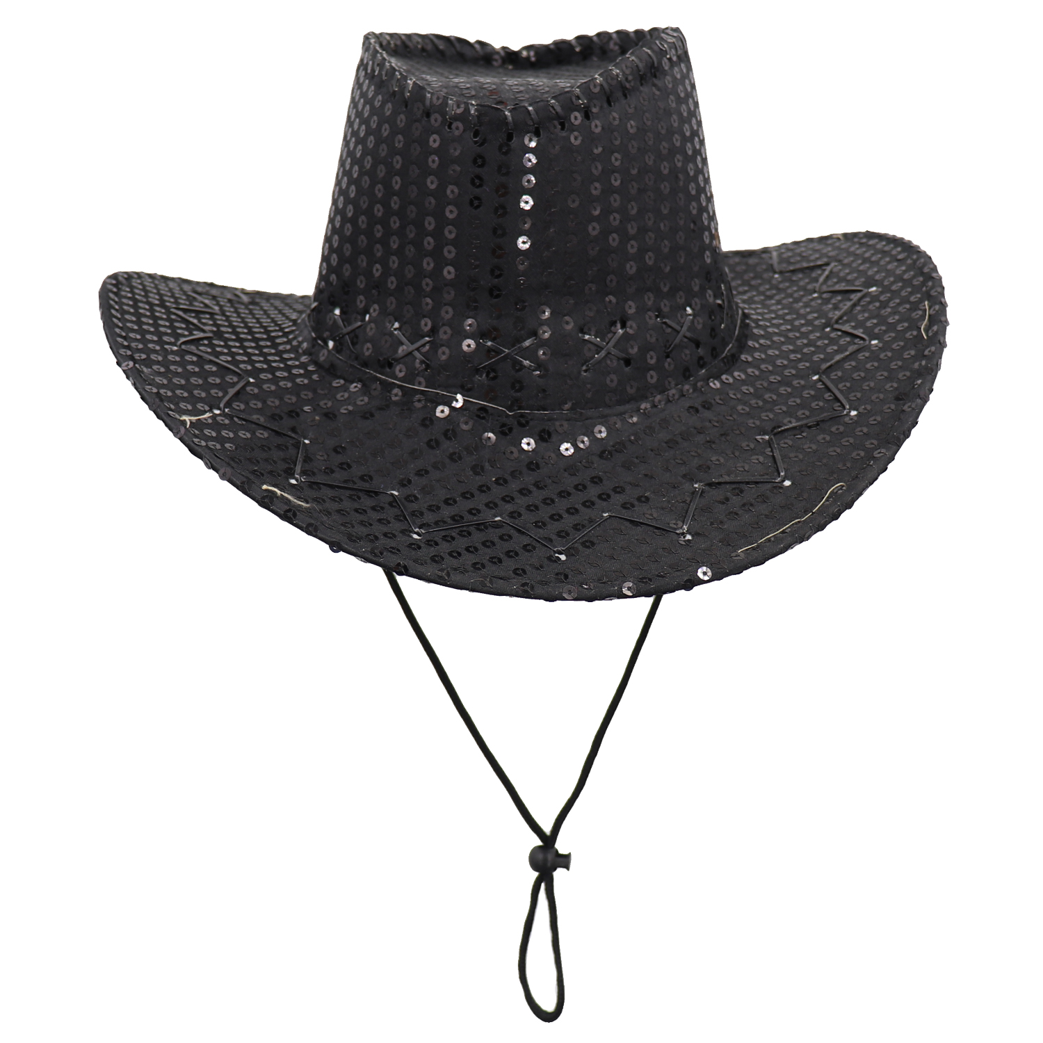 Sequin Cowboy Hat Glitter Cap Western Trilby Shiny Cowgirl Dress Up Party Wear, Black