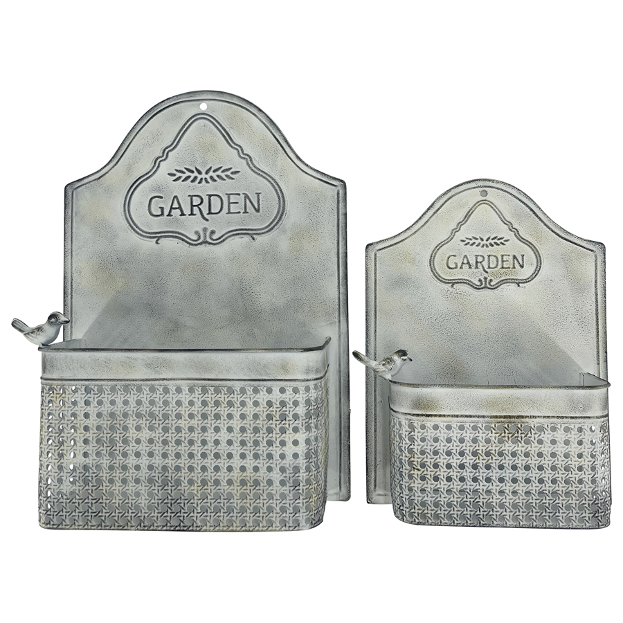 Set 2 Nested Garden Wall Planters w Perched Bird 46cm