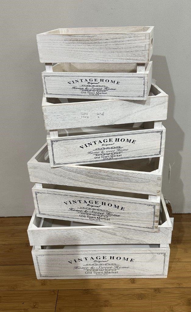 1 x Set 4 Vintage Home Wood Crate White Wash