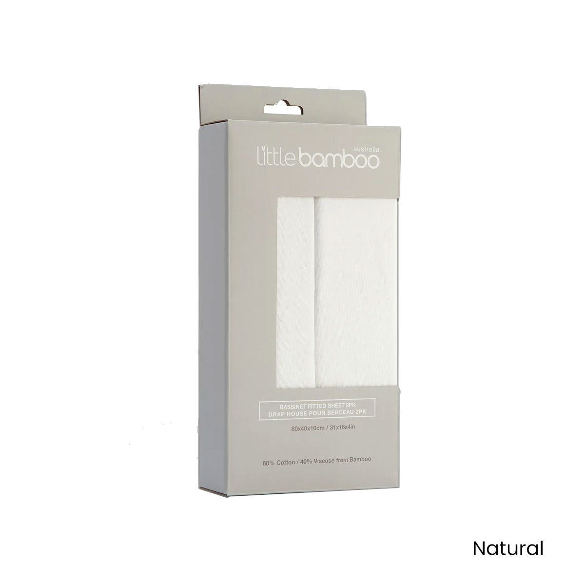 Set of 2 Little Bamboo Jersey Fitted Sheet Bassinet Size Natural