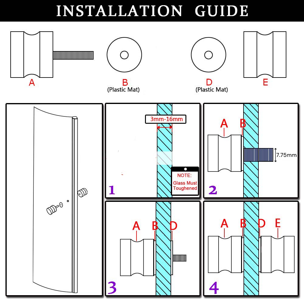 Shower Glass Door Knob Bathroom Round Back-to-Back Handle Pull 304 Brushed Nickel