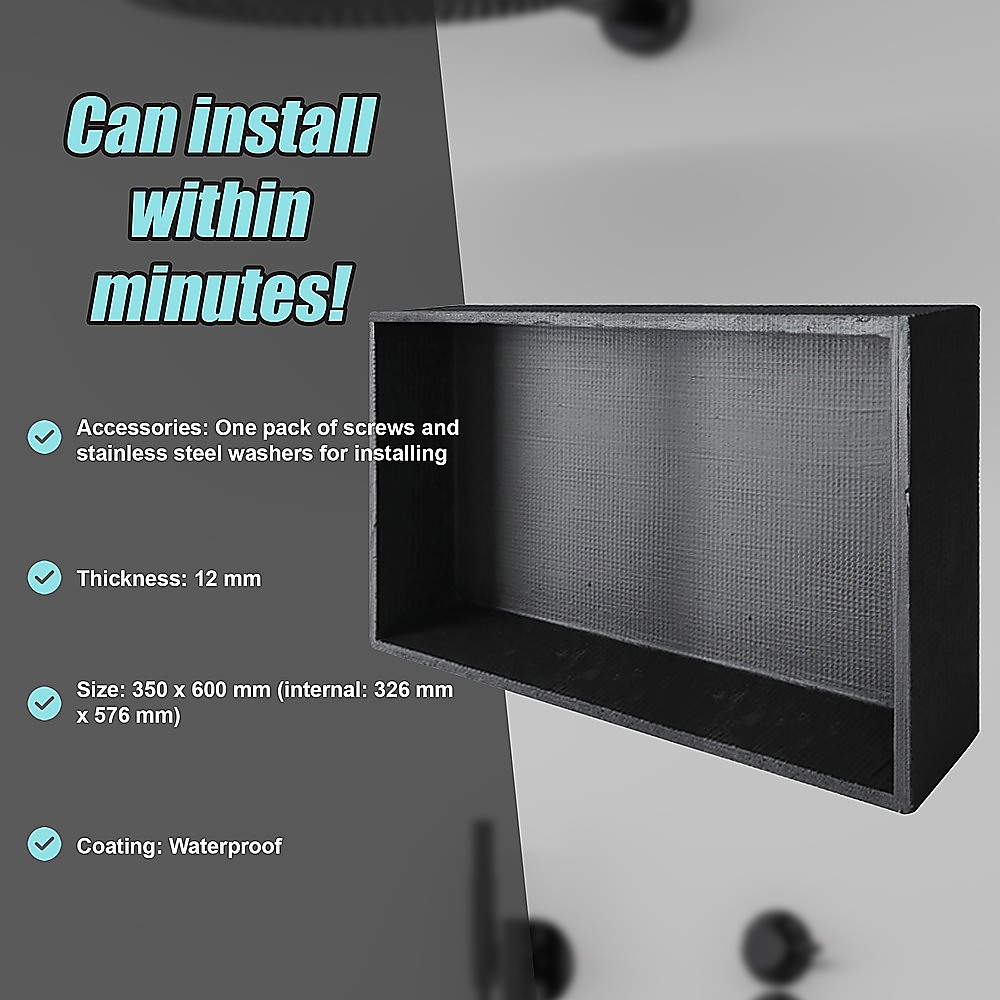 • Waterproof: Extremely water-resistant, this shower wall niche is perfect for areas prone to moisture or even immersed surfacesshowers, of course, but also bath surrounds, wet rooms, balconies, patios, garden water features, and external walls.