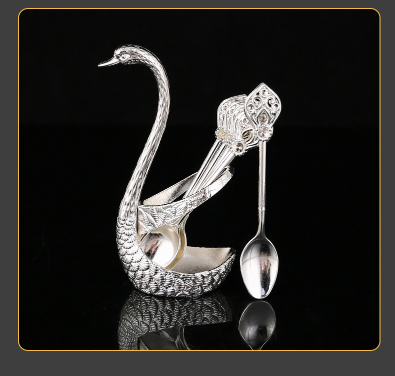• Complete Set: Includes one decorative swan holder and 6 matching small utensils (typically dessert spoons).