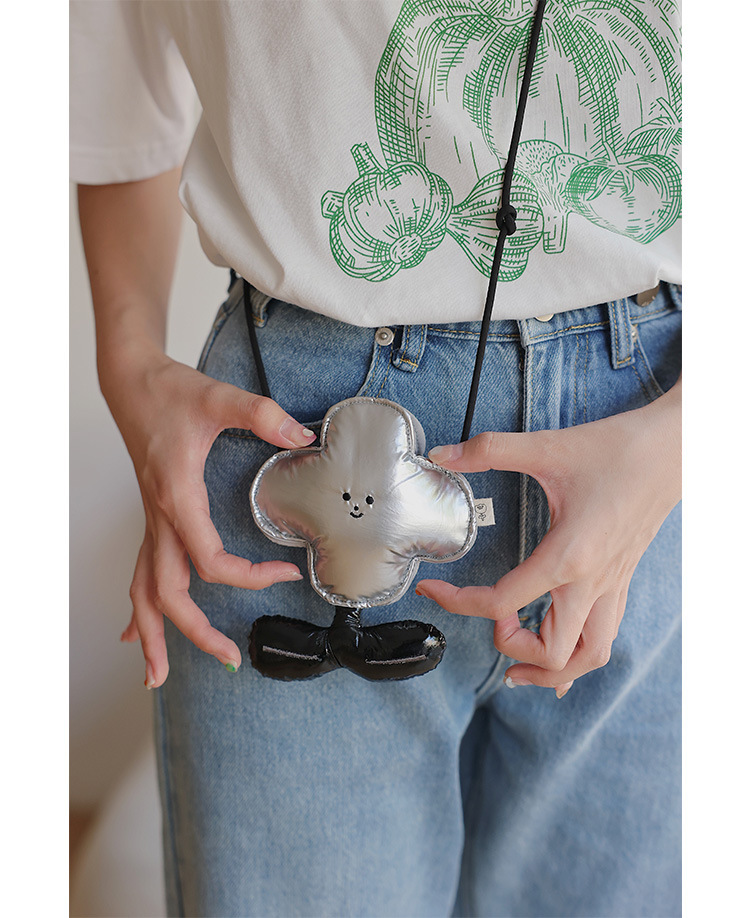 Silver Mini Crossbody Coin Purse & Earphone Pouch – Adorable Floral Design, Small Bag for Lipsticks, Lightweight Travel Essentials