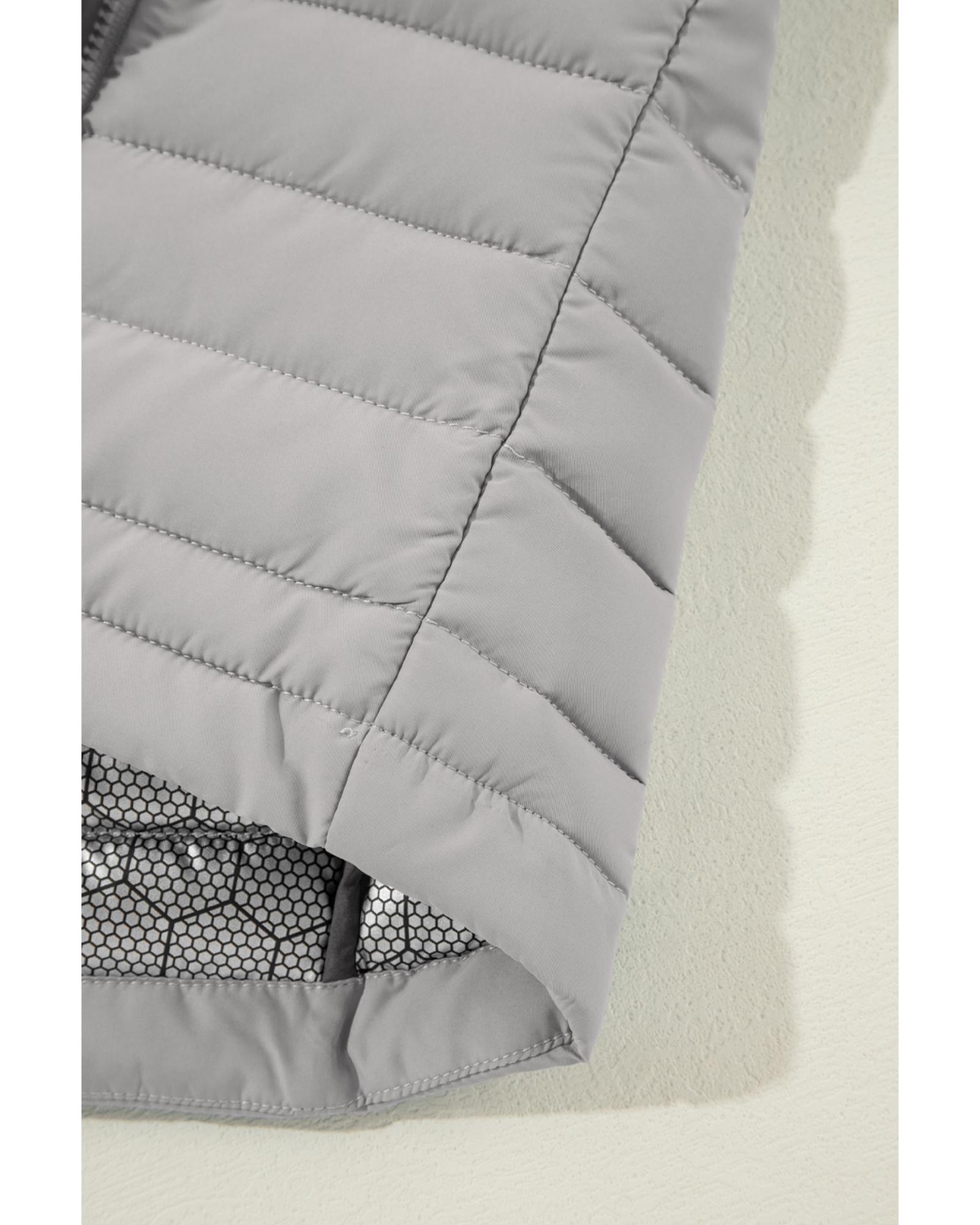 - Silvery plush collared quilted zipped puffer vest