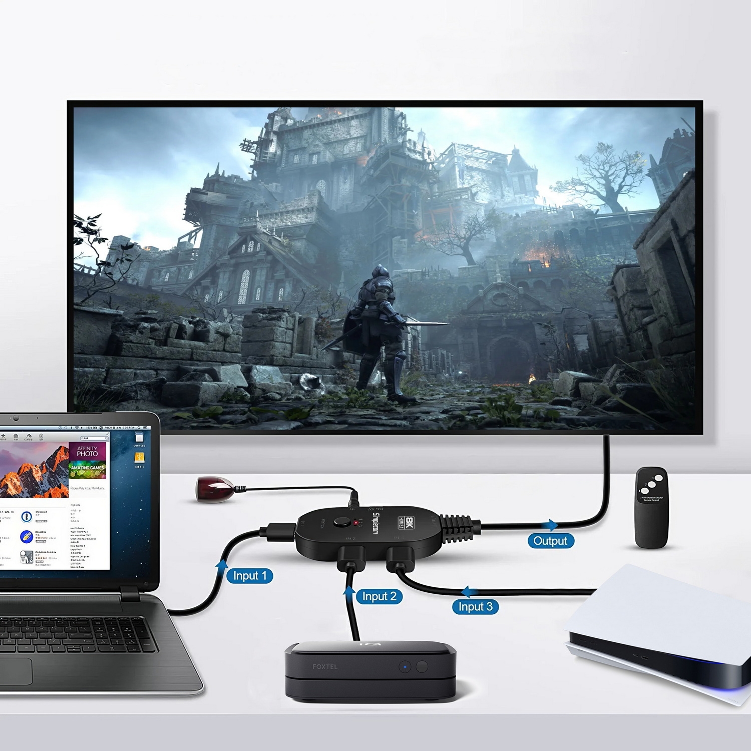 Simplecom CM353 3-Port HDMI 2.1 Switch 3 IN 1 OUT Splitter HDCP 2.3 8K@60Hz