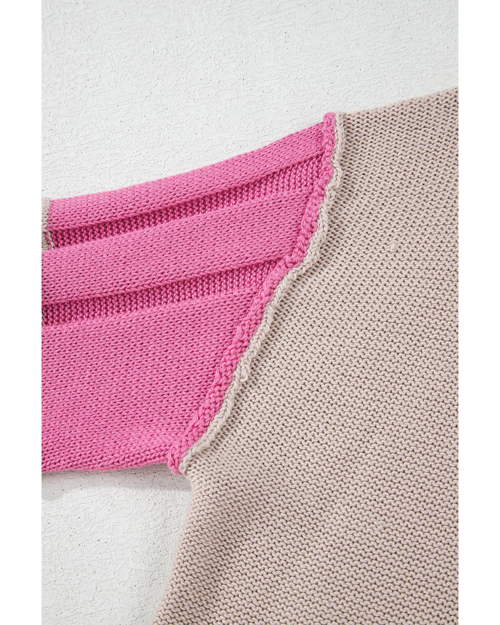 Simply Taupe Colorblock Exposed Seam Round Neck Sweater – M
