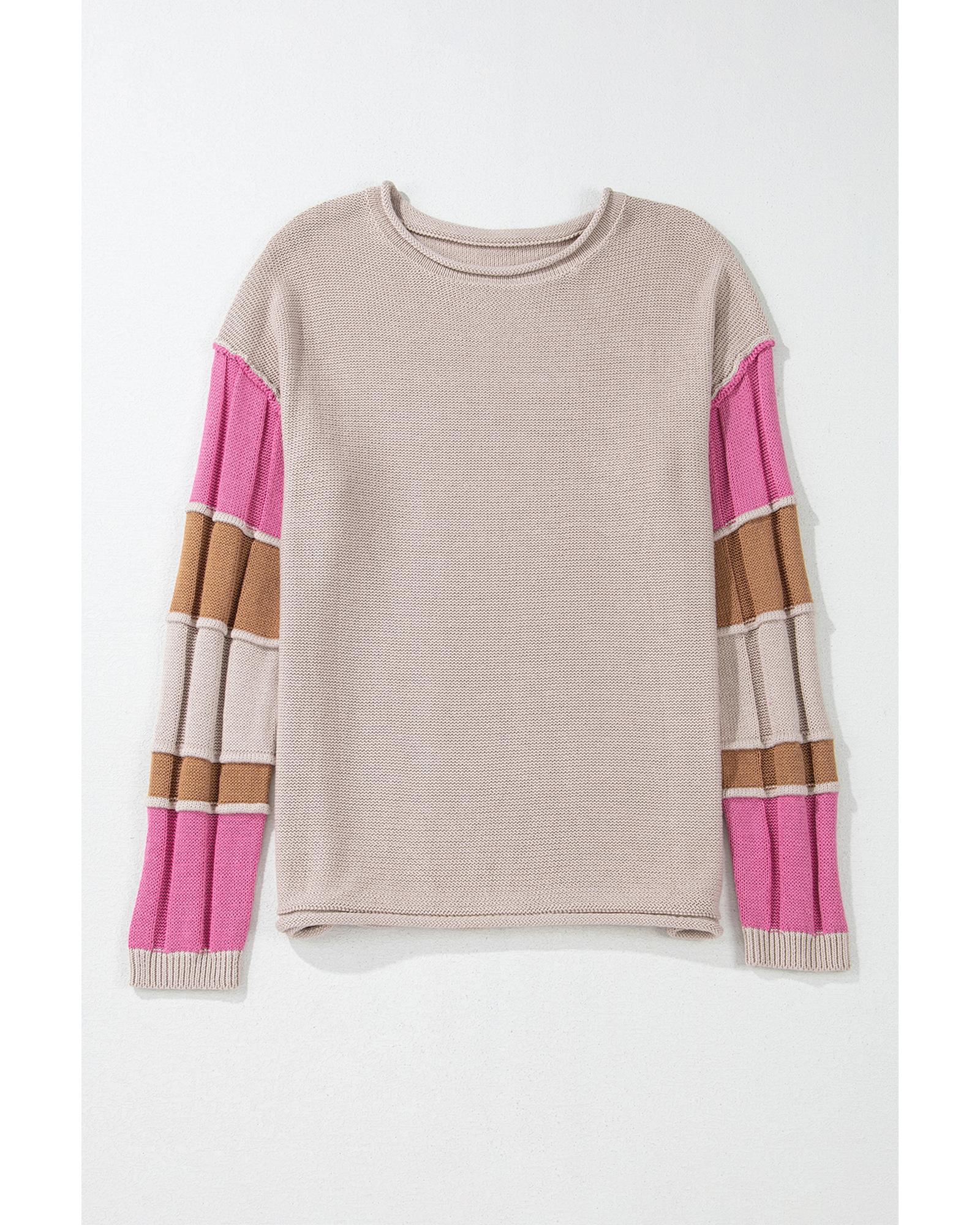 Simply Taupe Colorblock Exposed Seam Round Neck Sweater – S