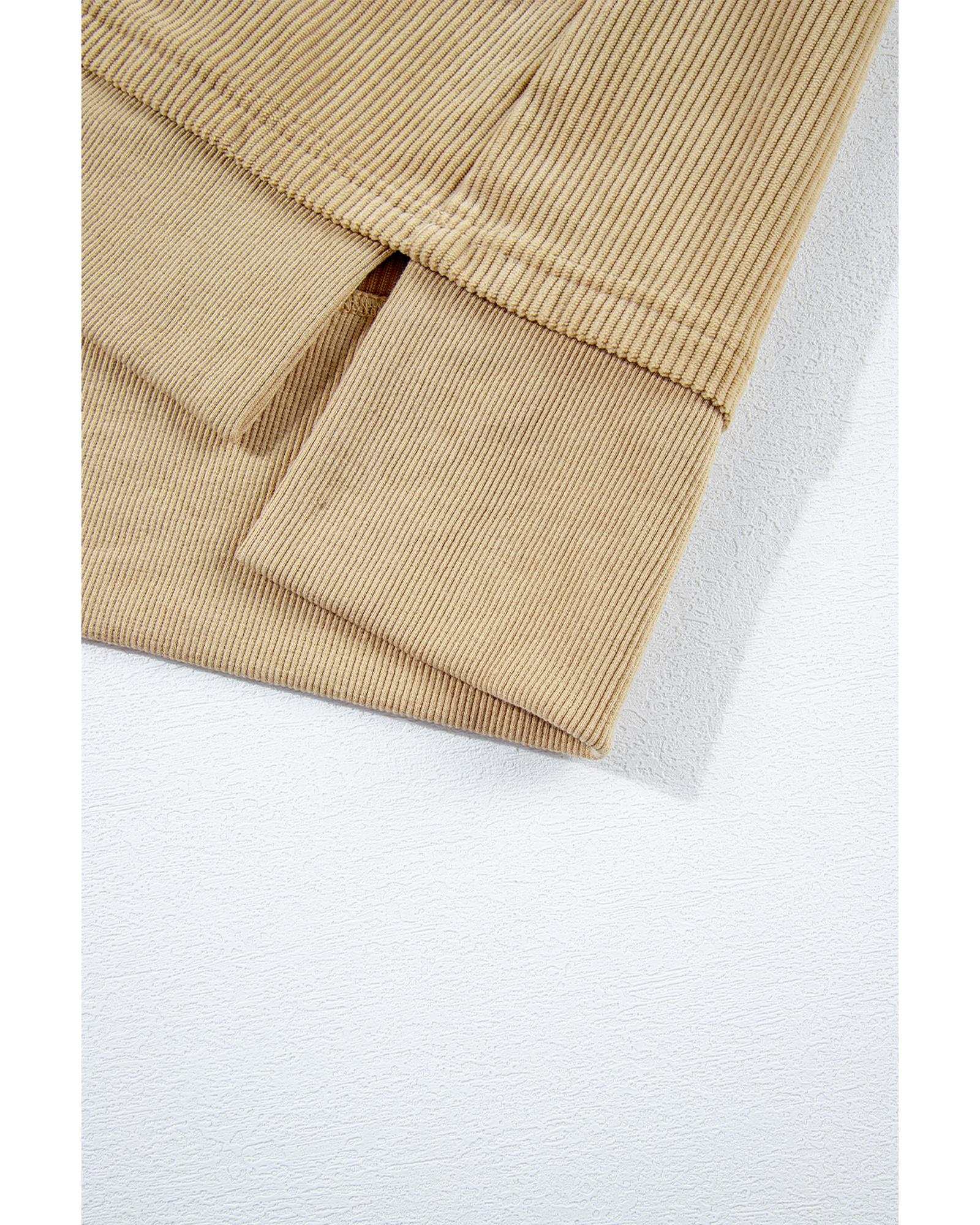 Simply Taupe Solid Ribbed Knit Buttoned Drop Shoulder Oversized Hoodie – S