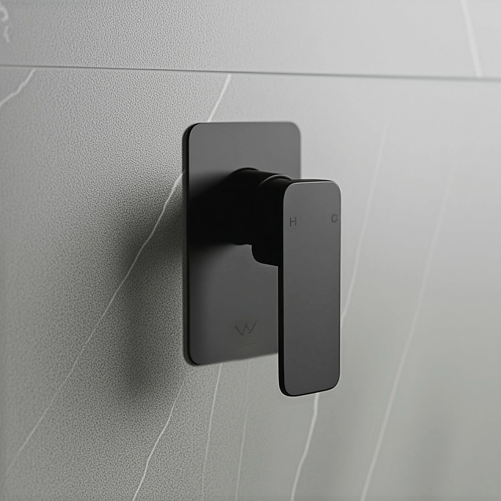 Single Square Shower Bath Mixer Tap Bathroom WATERMARK Approved in Black