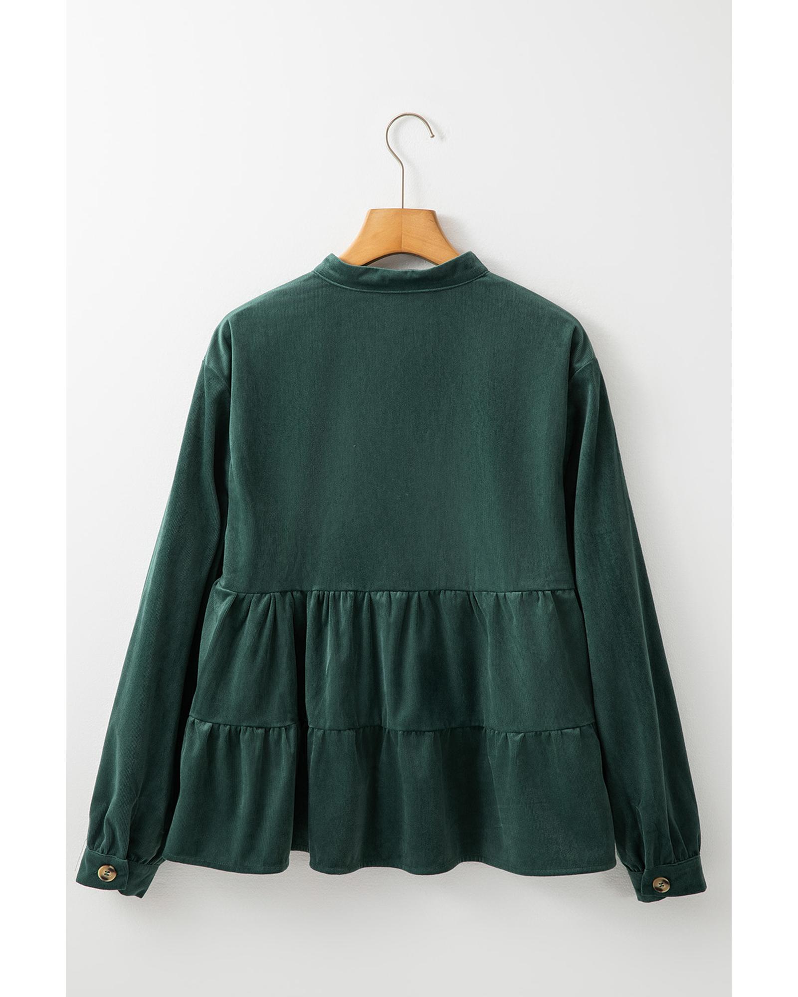 - Skobeloff Corduroy Ruffle Tiered Buttoned O Neck Shirt