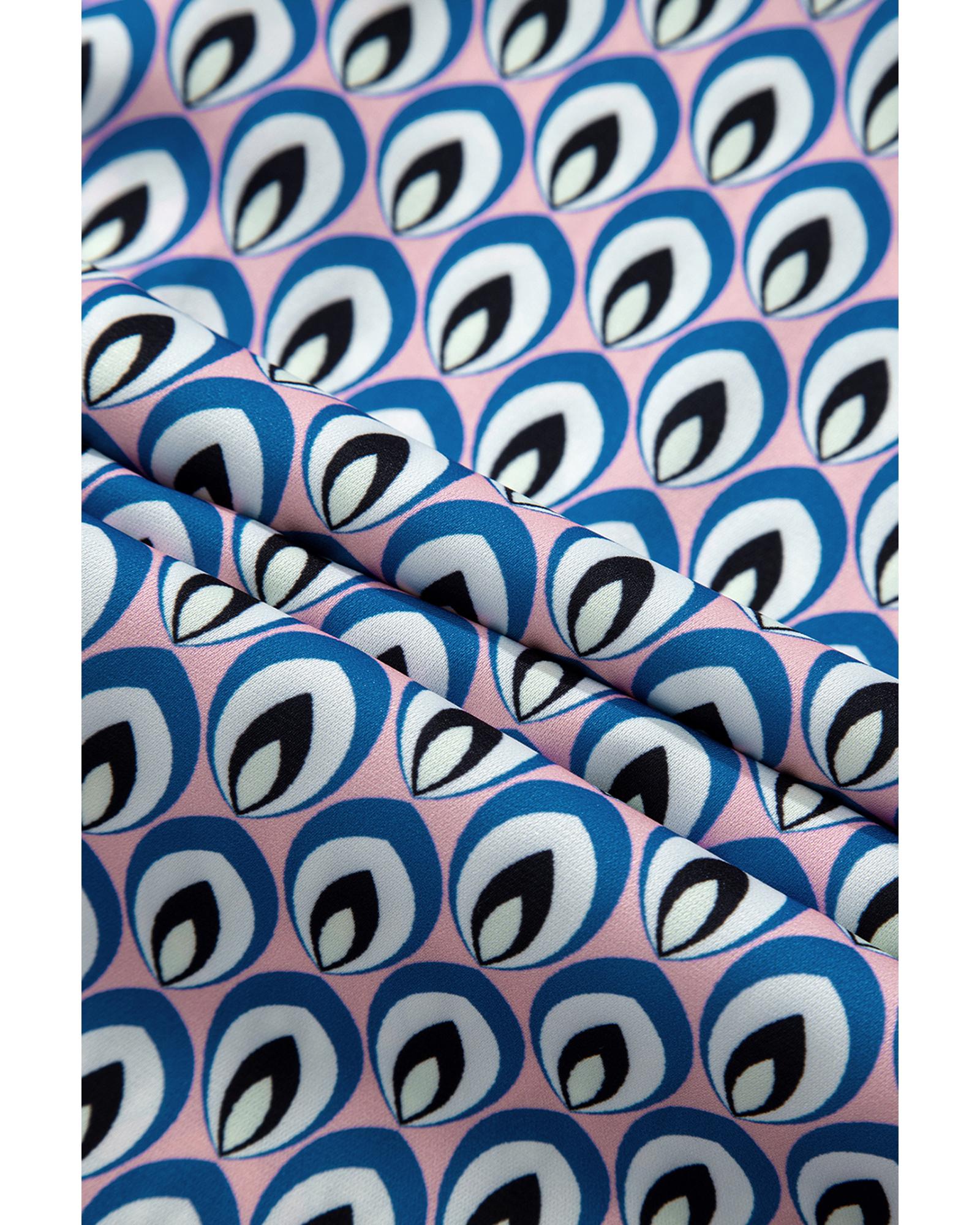 Sky Blue Abstract Print Shirred Cuff Buttoned Oversized Shirt – S