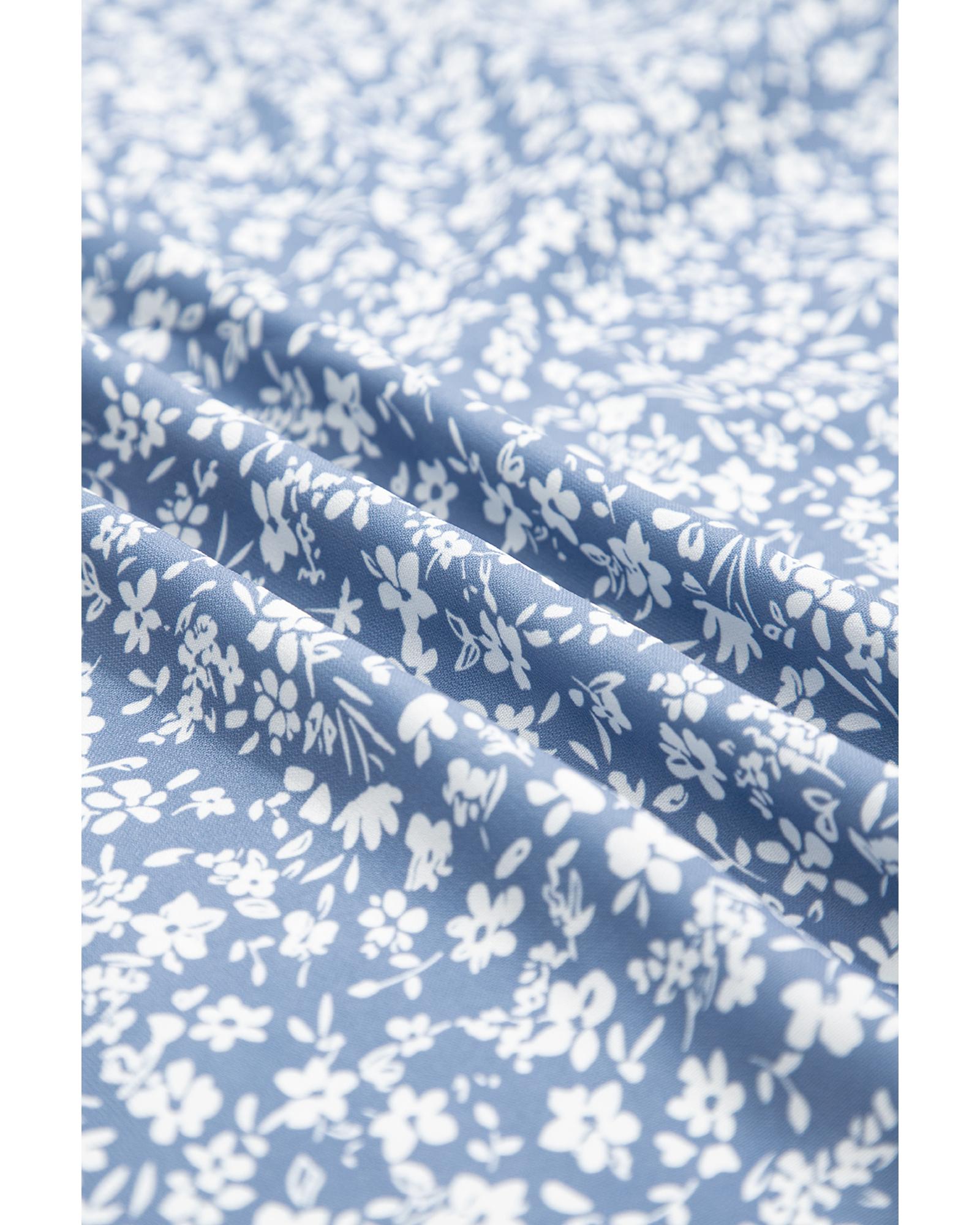 Sky Blue Boho Floral High Waist Long Skirt with Side Split – S