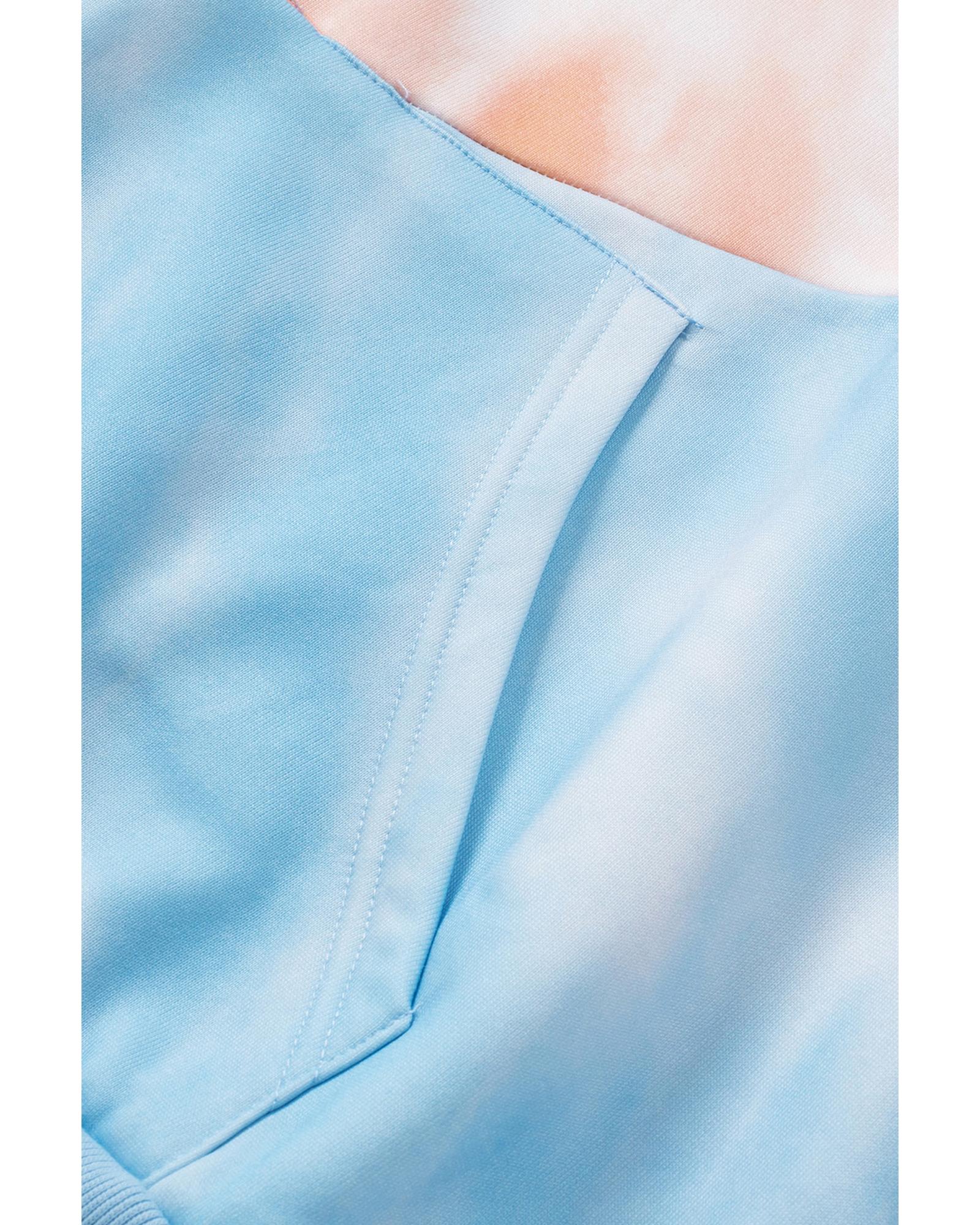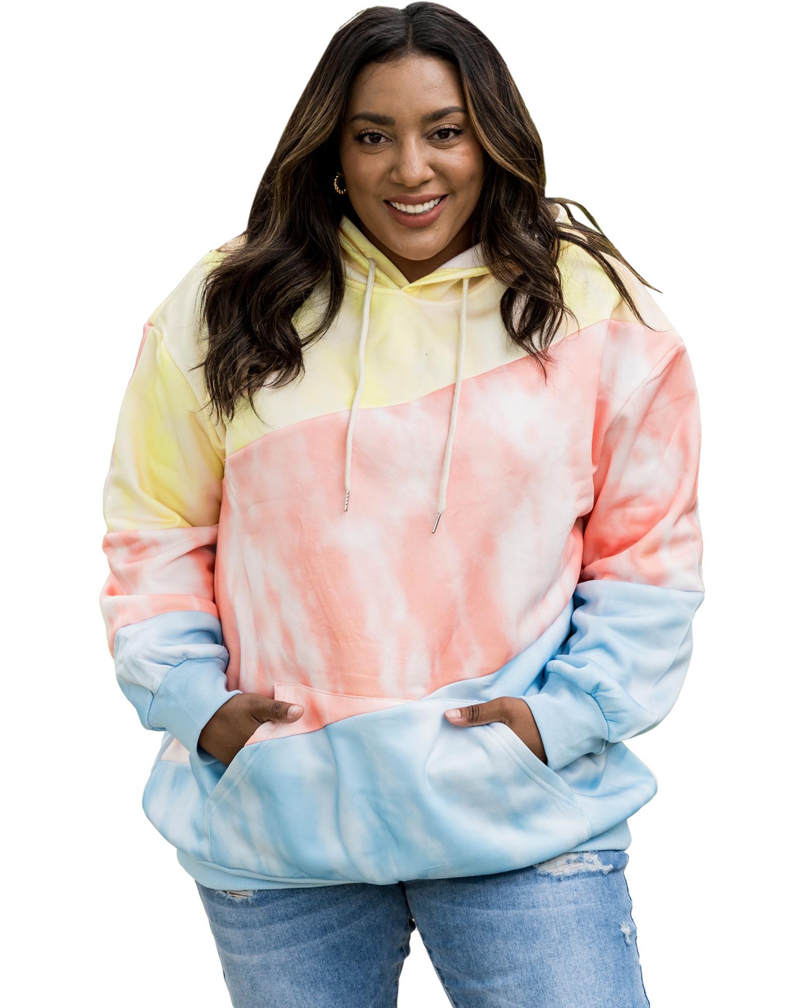 Sky Blue Colorblock Kangaroo Pocket Plus Size Hoodie – 5X