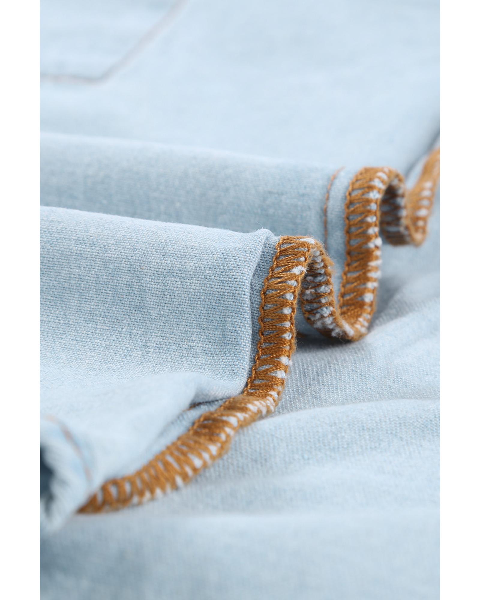 Sky Blue Contrast Leopard Denim Jacket – XL