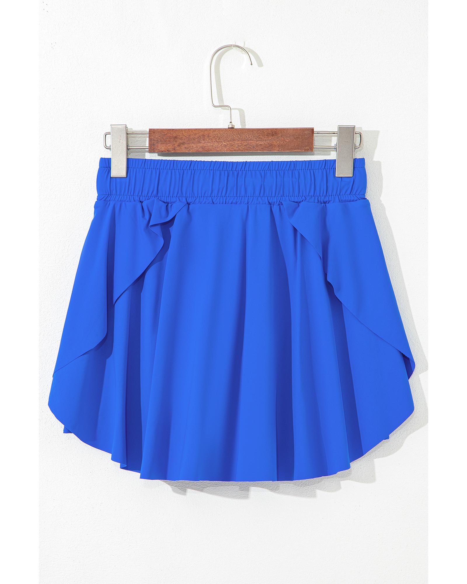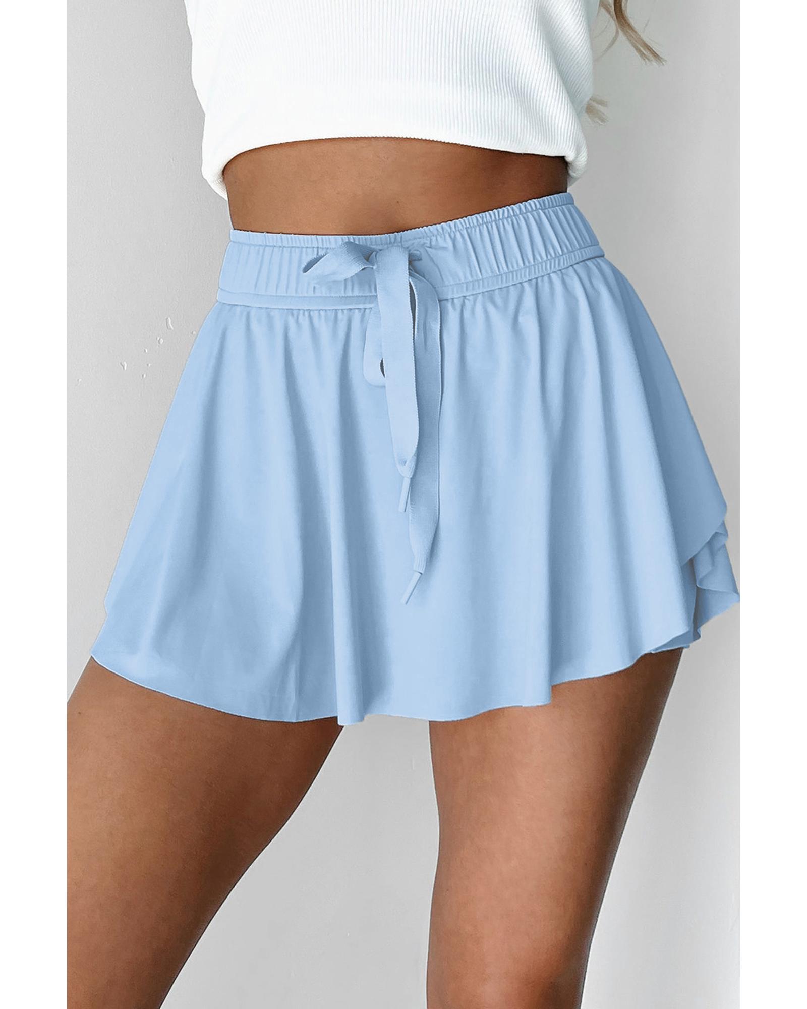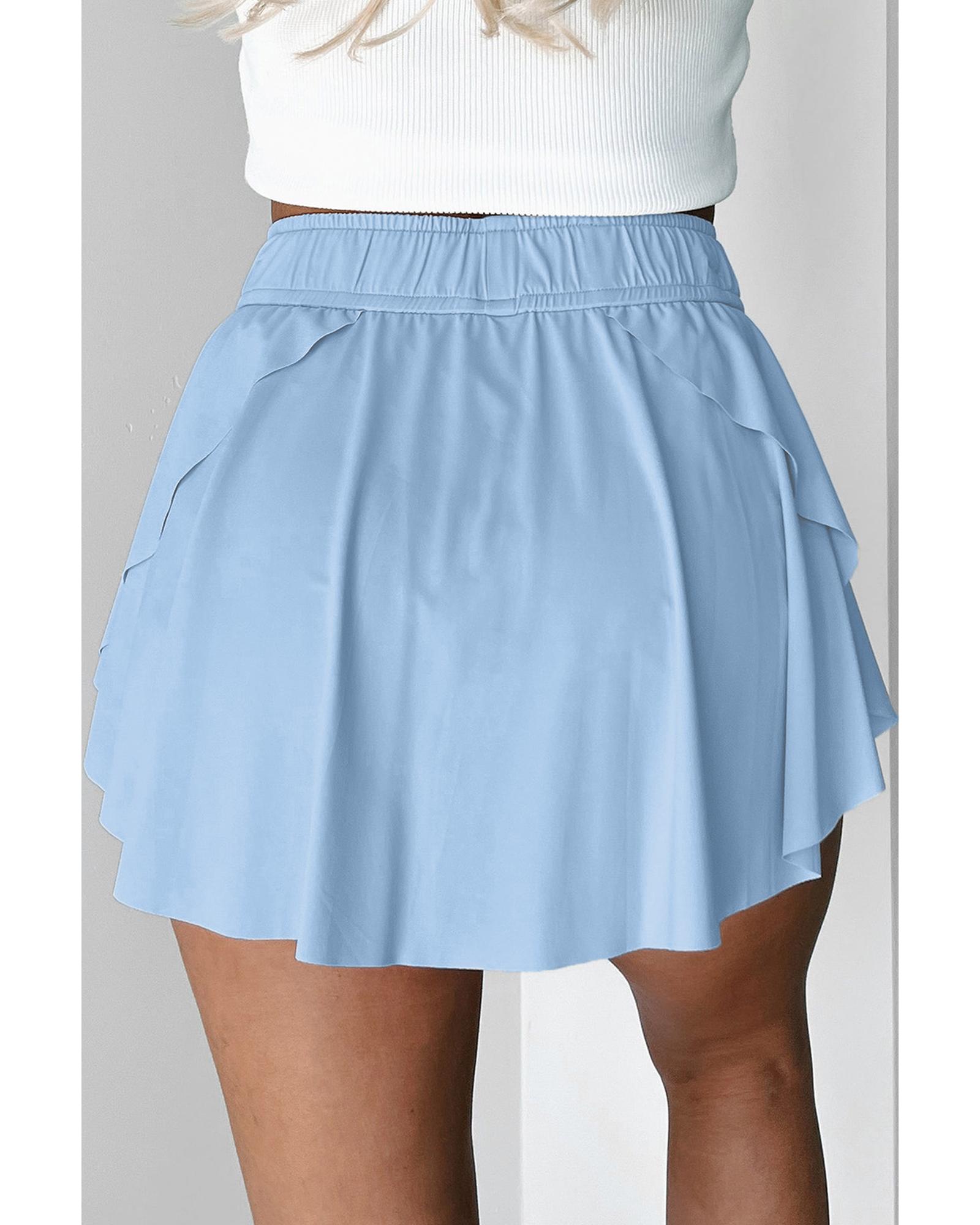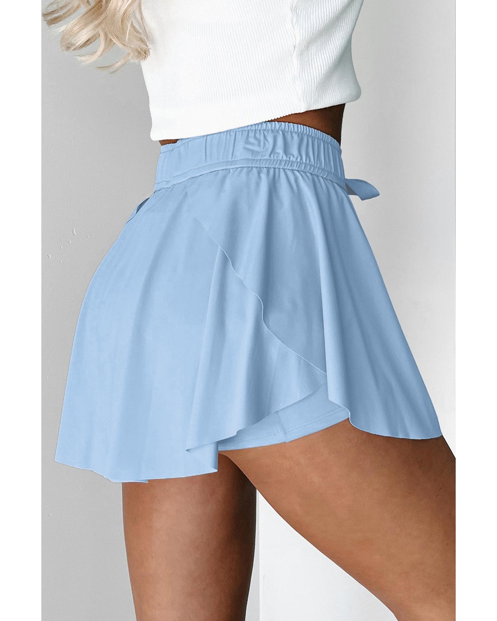 Sky Blue Drawstring High Waist Lined Tennis Skorts – S