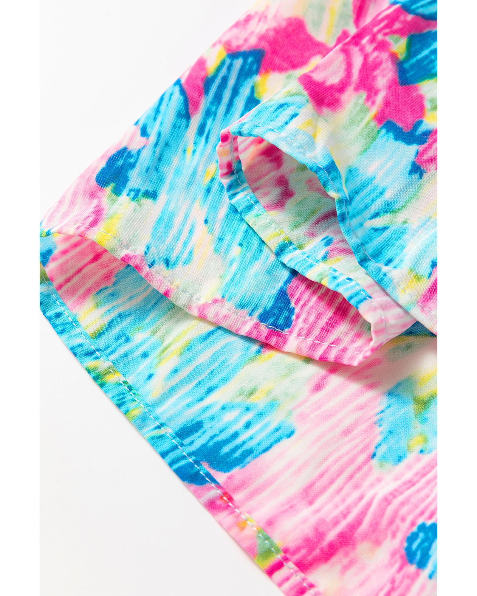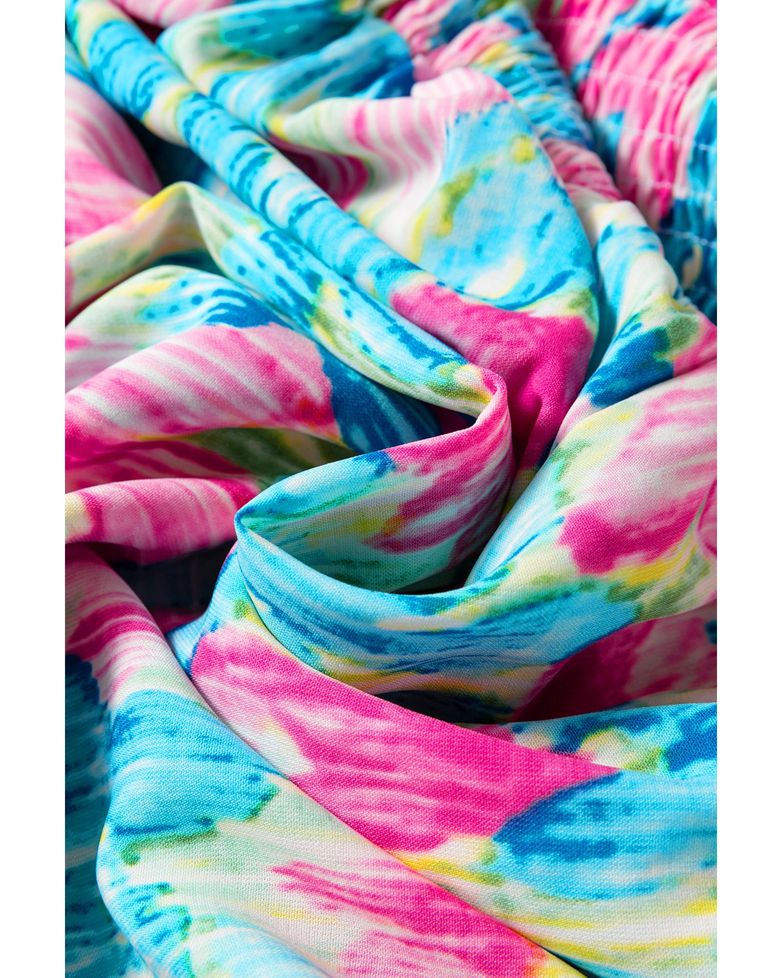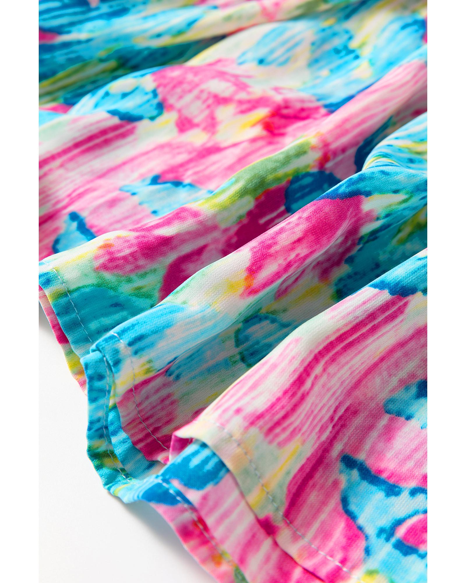 Sky Blue Floral Allover Print Shirred Square Neck Plus Size Maxi Dress – 1X