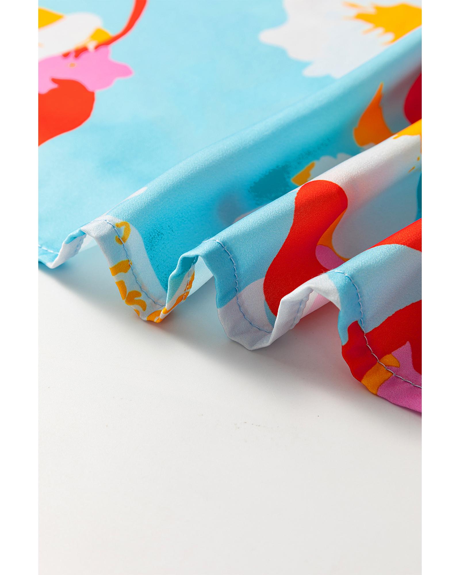 - Sky Blue Floral Bracelet Sleeve Empire Waist Mini Dress