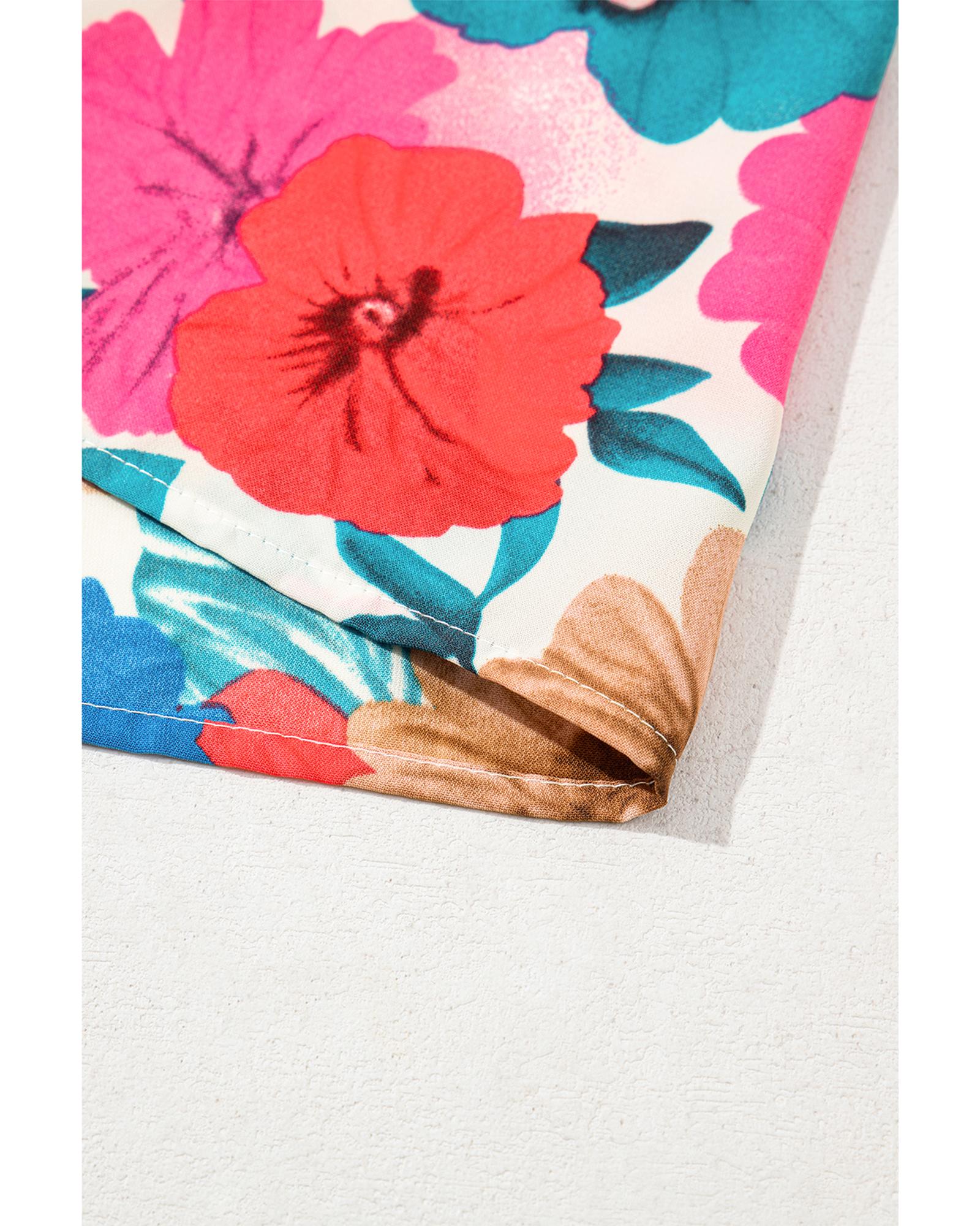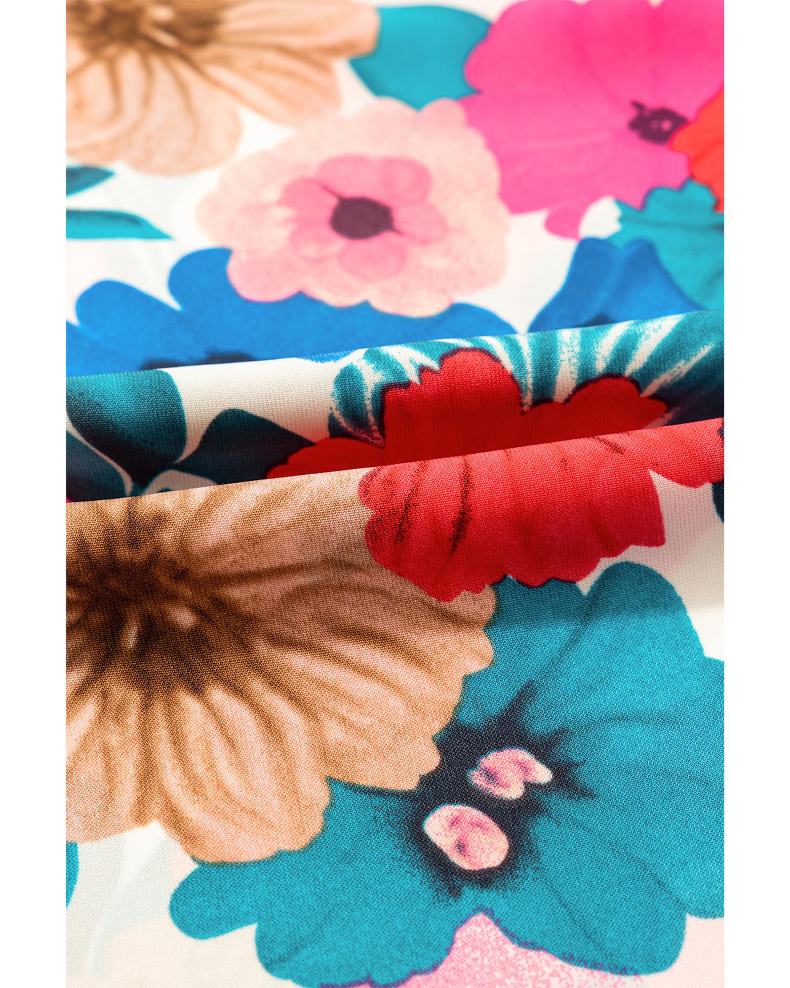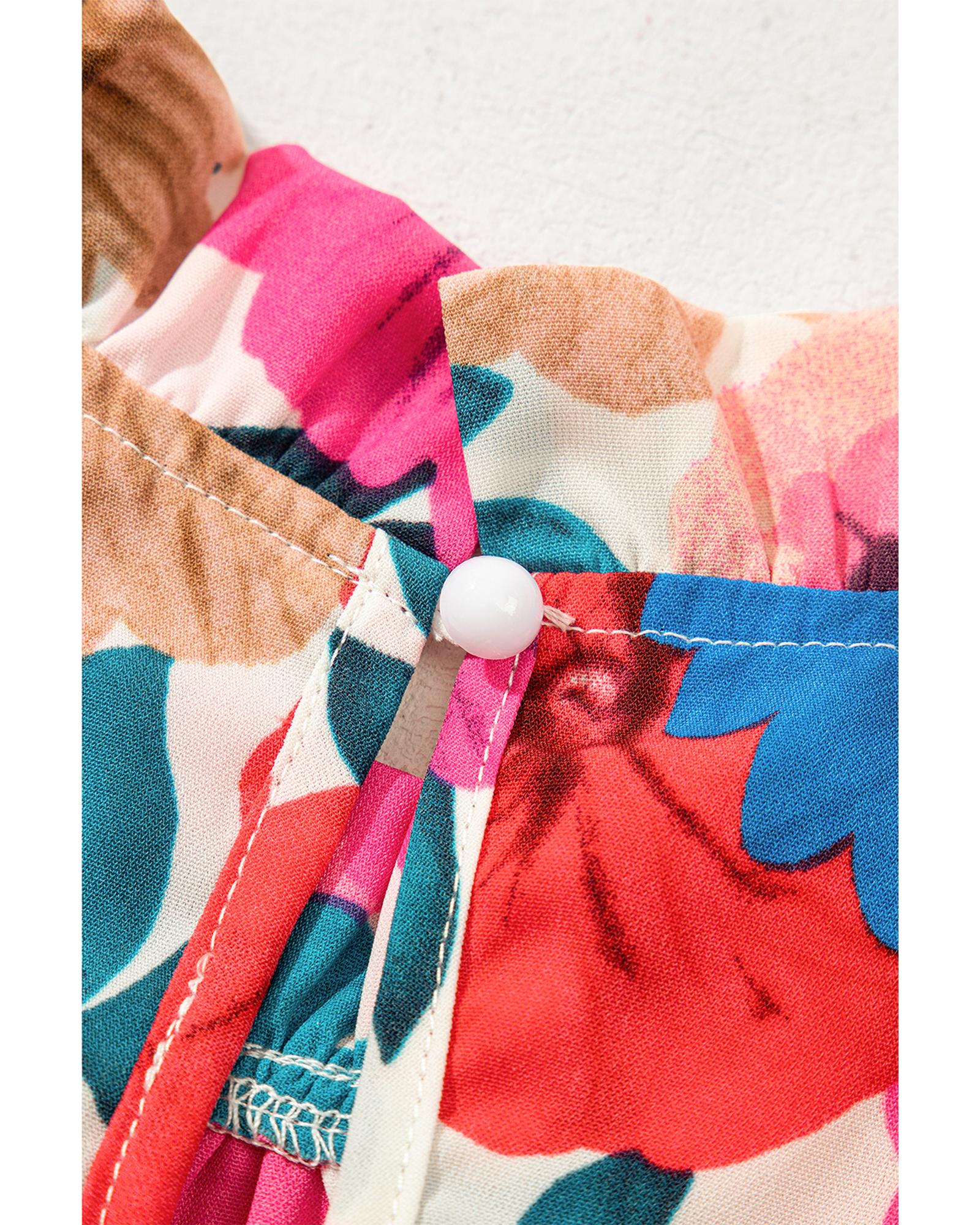 Sky Blue Floral Mock Neck Striped Flutter Sleeve Blouse – M