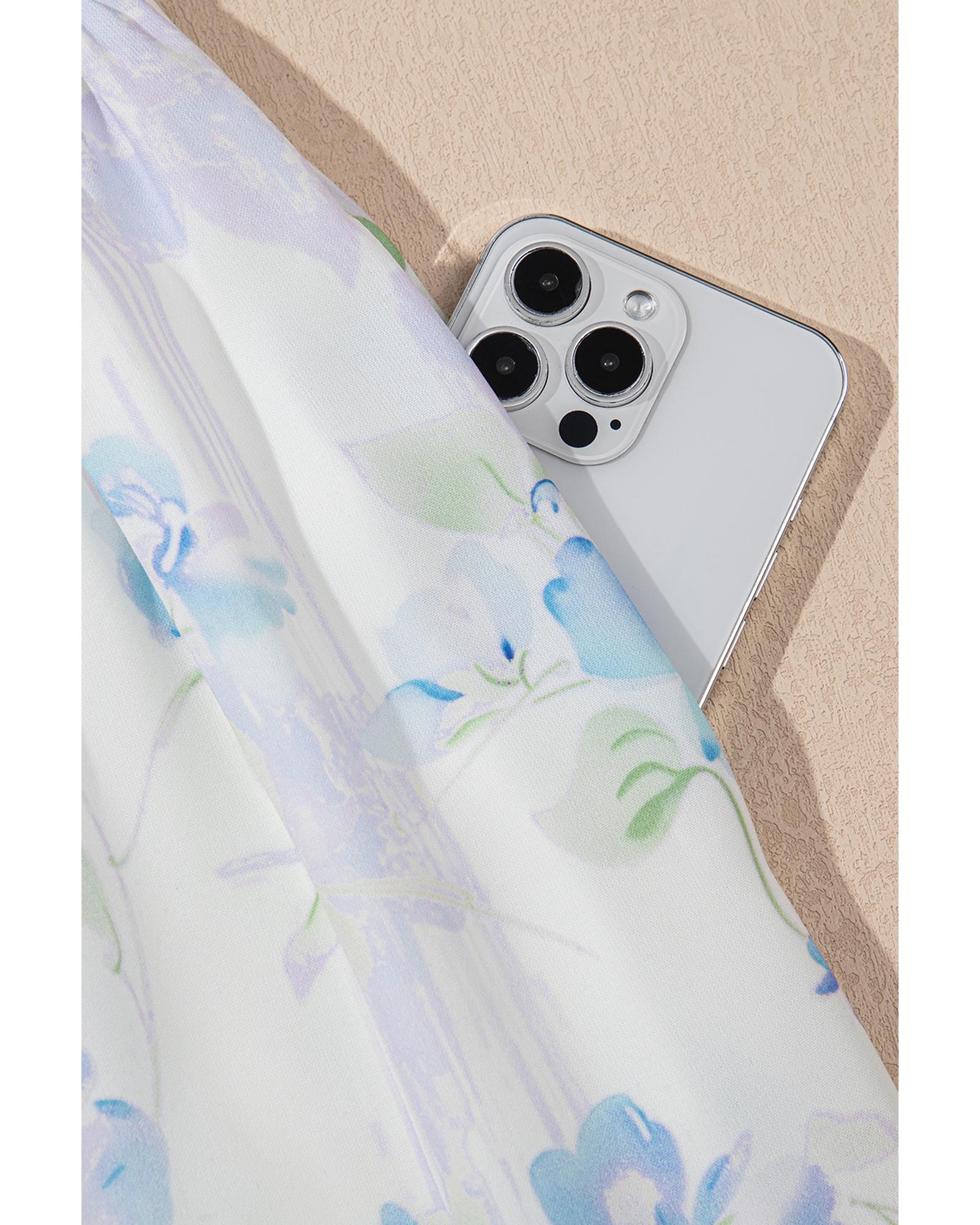 Sky Blue Floral Smocked High Waist Double Ruffle Sleeveless Long Dress – L
