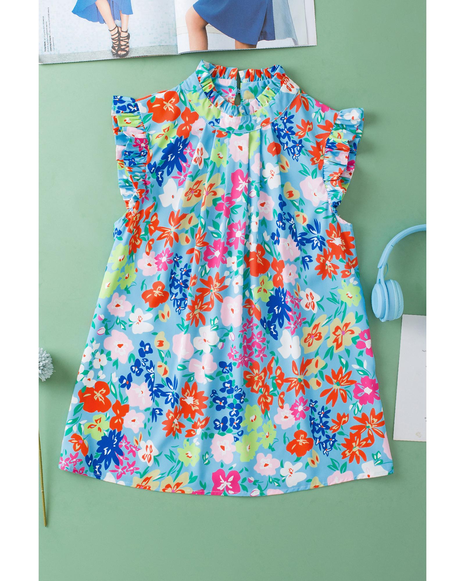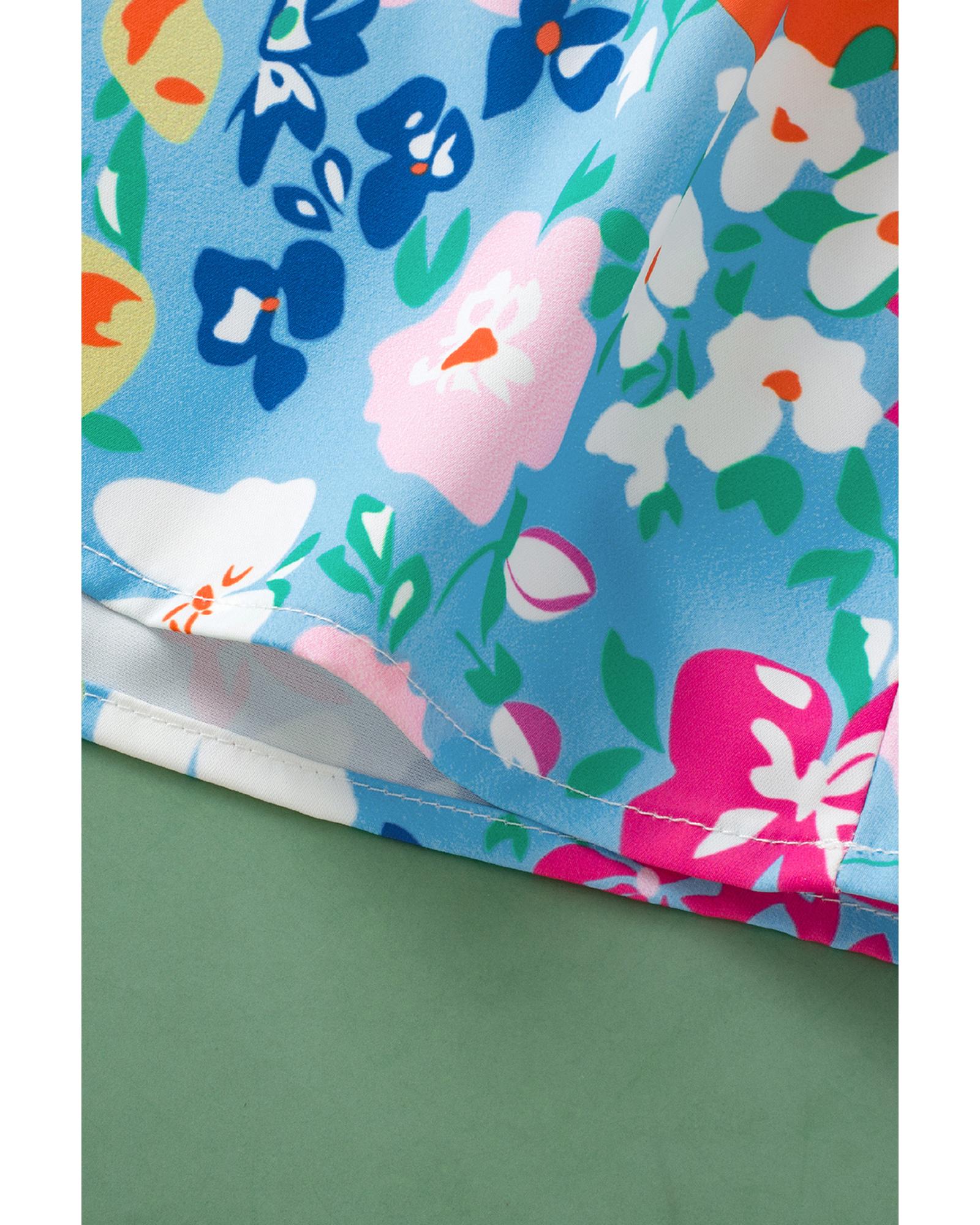 Coffee Ruffled Floral Sleeve Patchwork Waffle Knit O Neck Blouse - XL