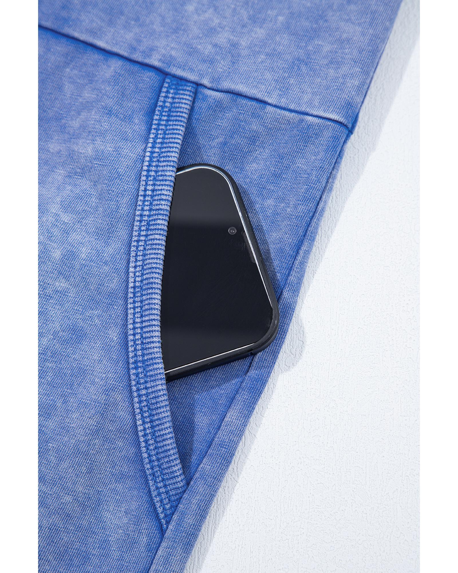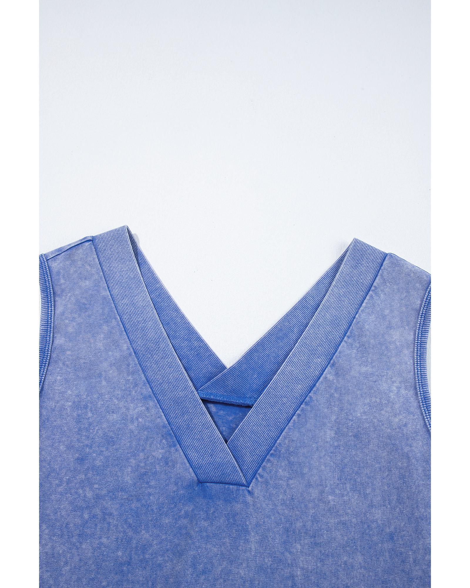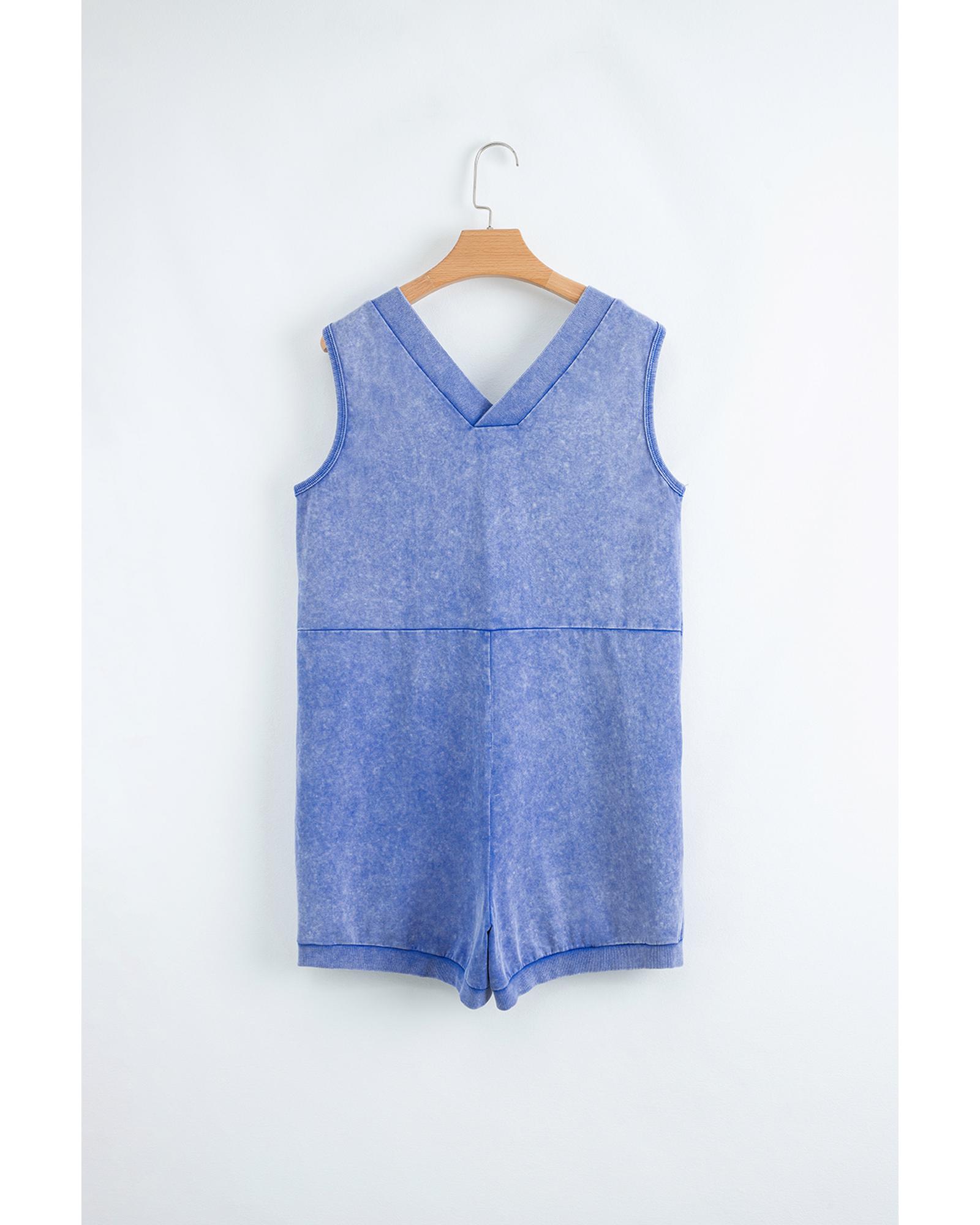 Sky Blue Mineral Wash Pocketed Sleeveless V Neck Loose Romper – S