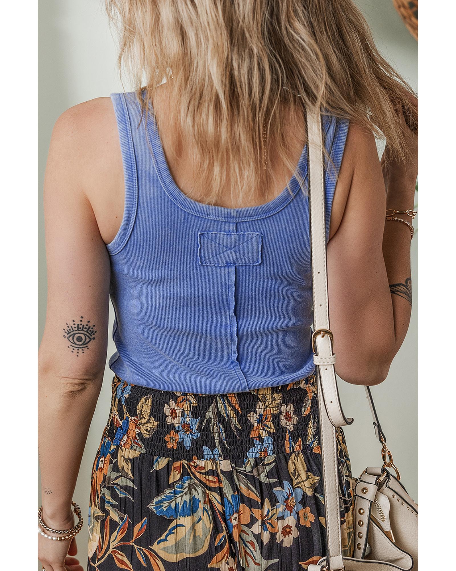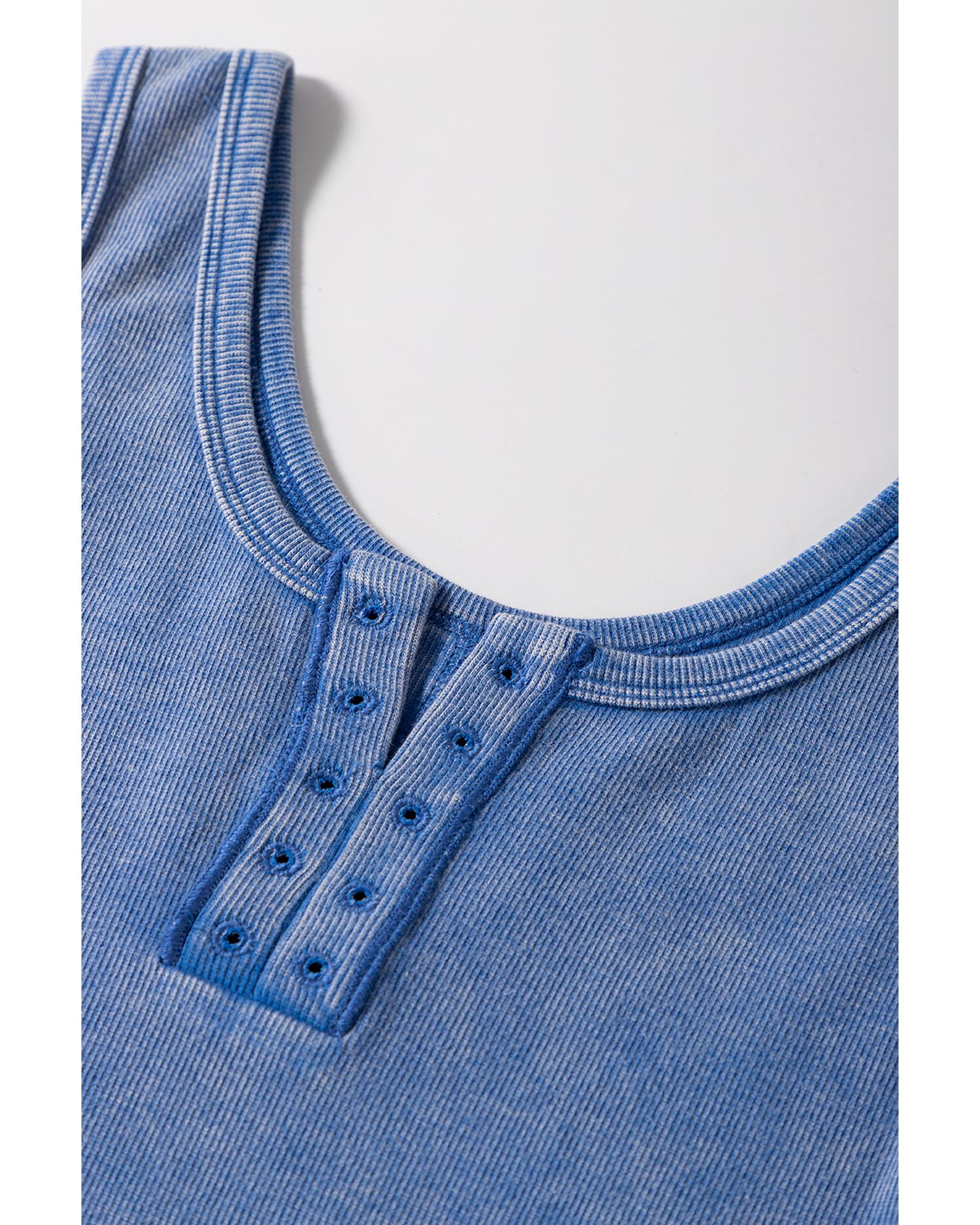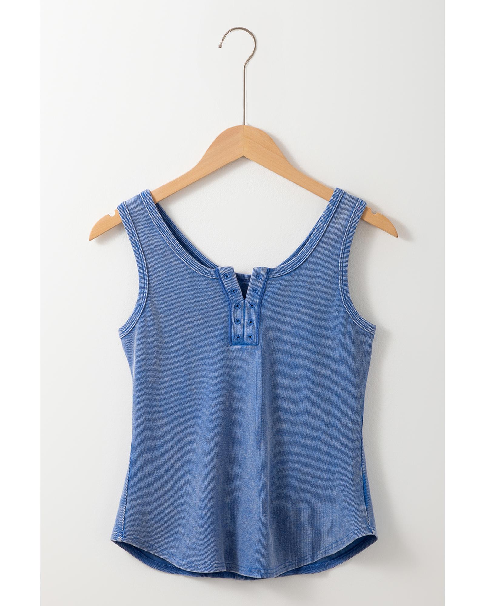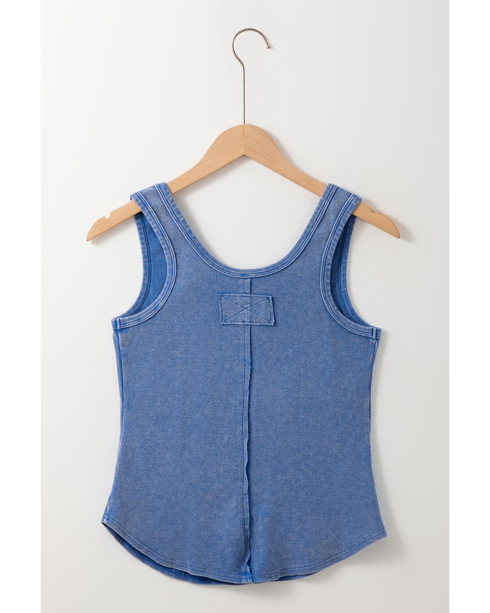 Sky Blue Mineral Wash Ribbed Notch Neck Tank Top – M