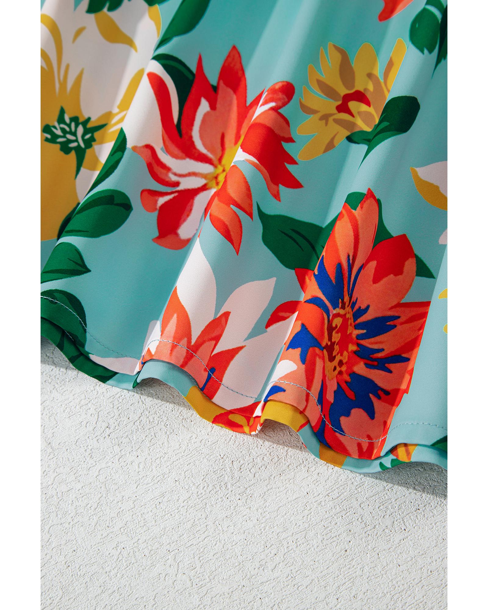 Sky Blue Plus Size Floral Print V Neck Batwing Sleeve Blouse – 2X