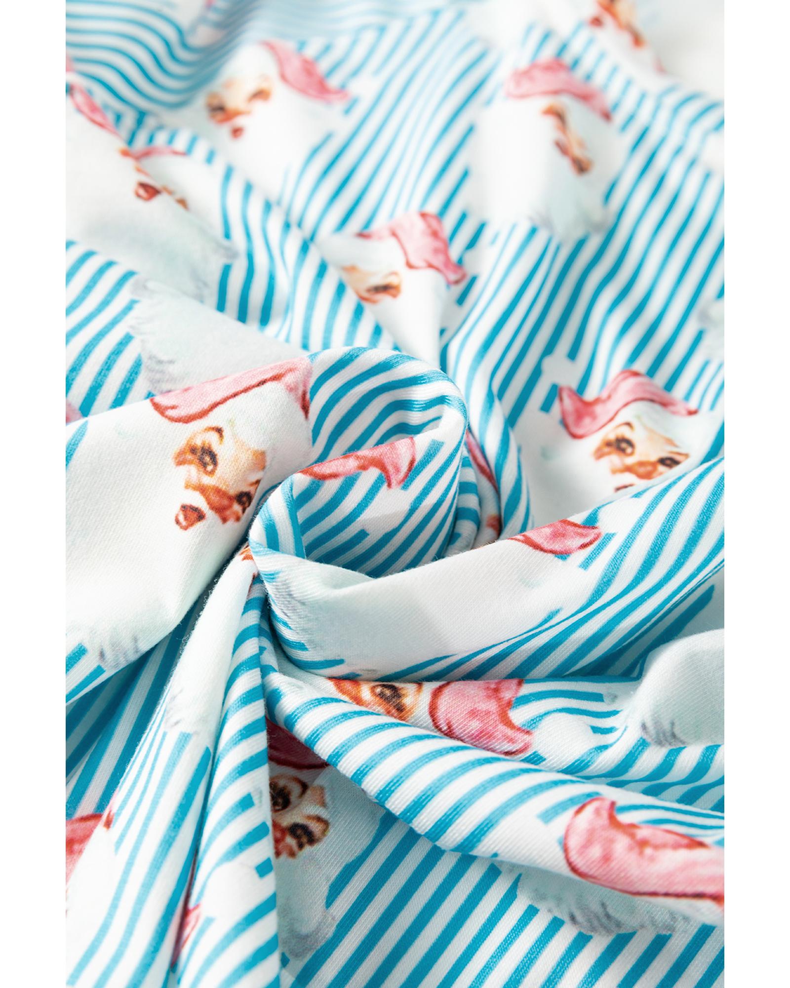 Sky Blue Santa Claus Striped Print Loose Fit Two Piece Lounge Set – XL
