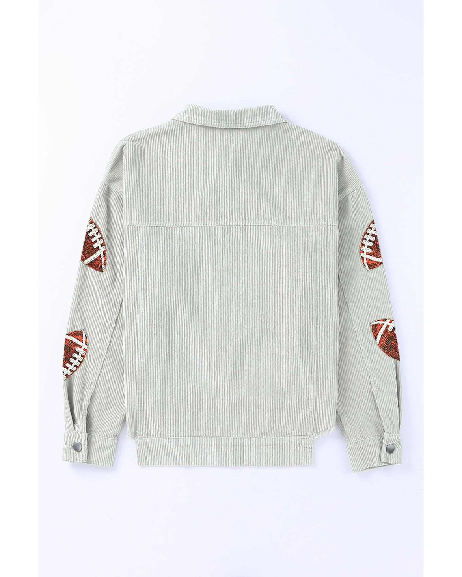Sky Blue Sequined Football Patch Ribbed Cotton Jacket – XL
