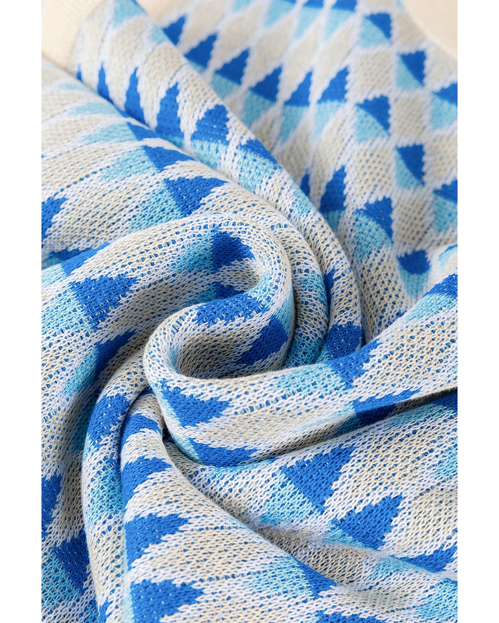 Sky Blue Stripe Geometric Print Round Neck Slim Fit Sweater Vest – XL