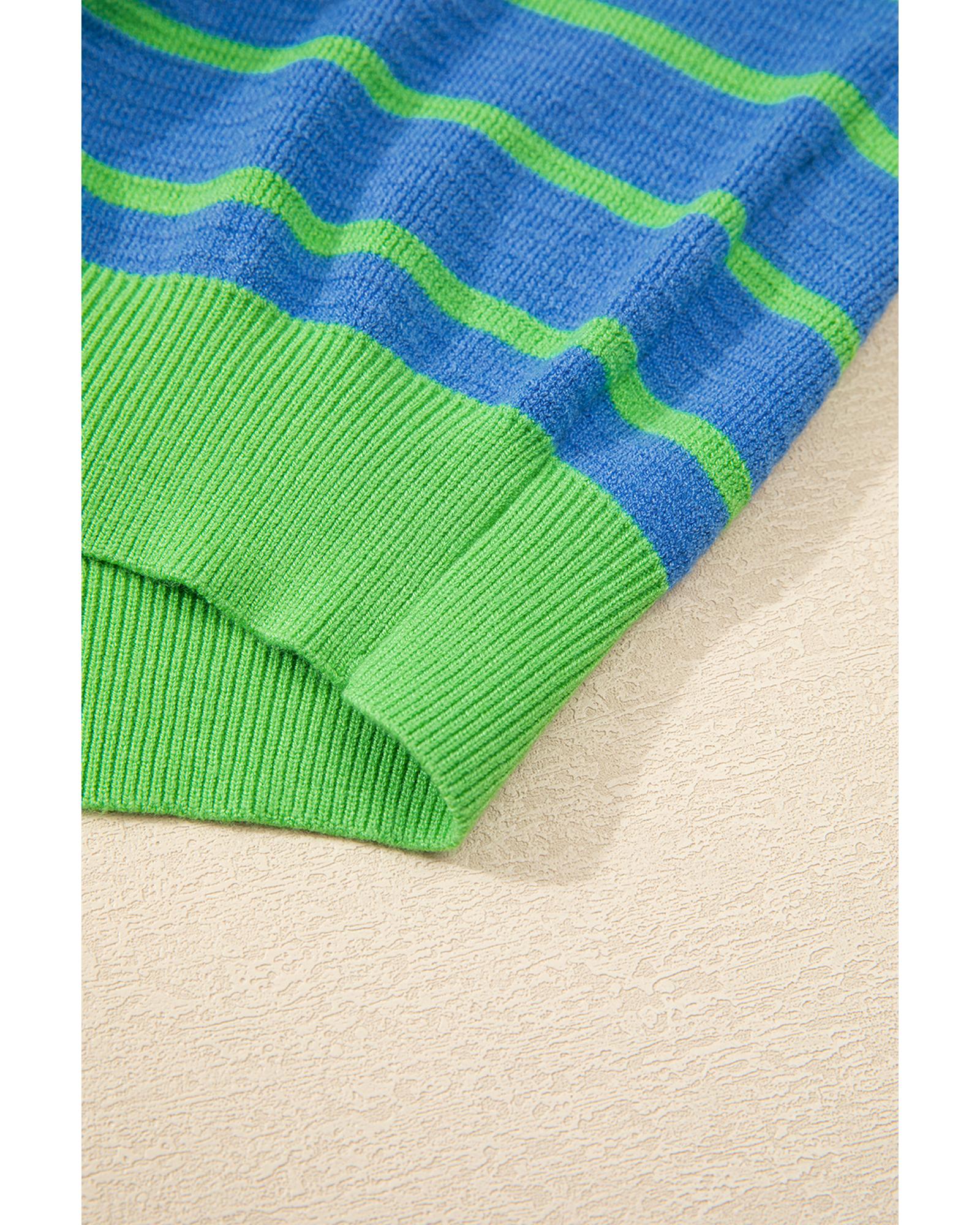 Rose Stripe Crew Neck Wide Sleeve Colorblock Sweater - L
