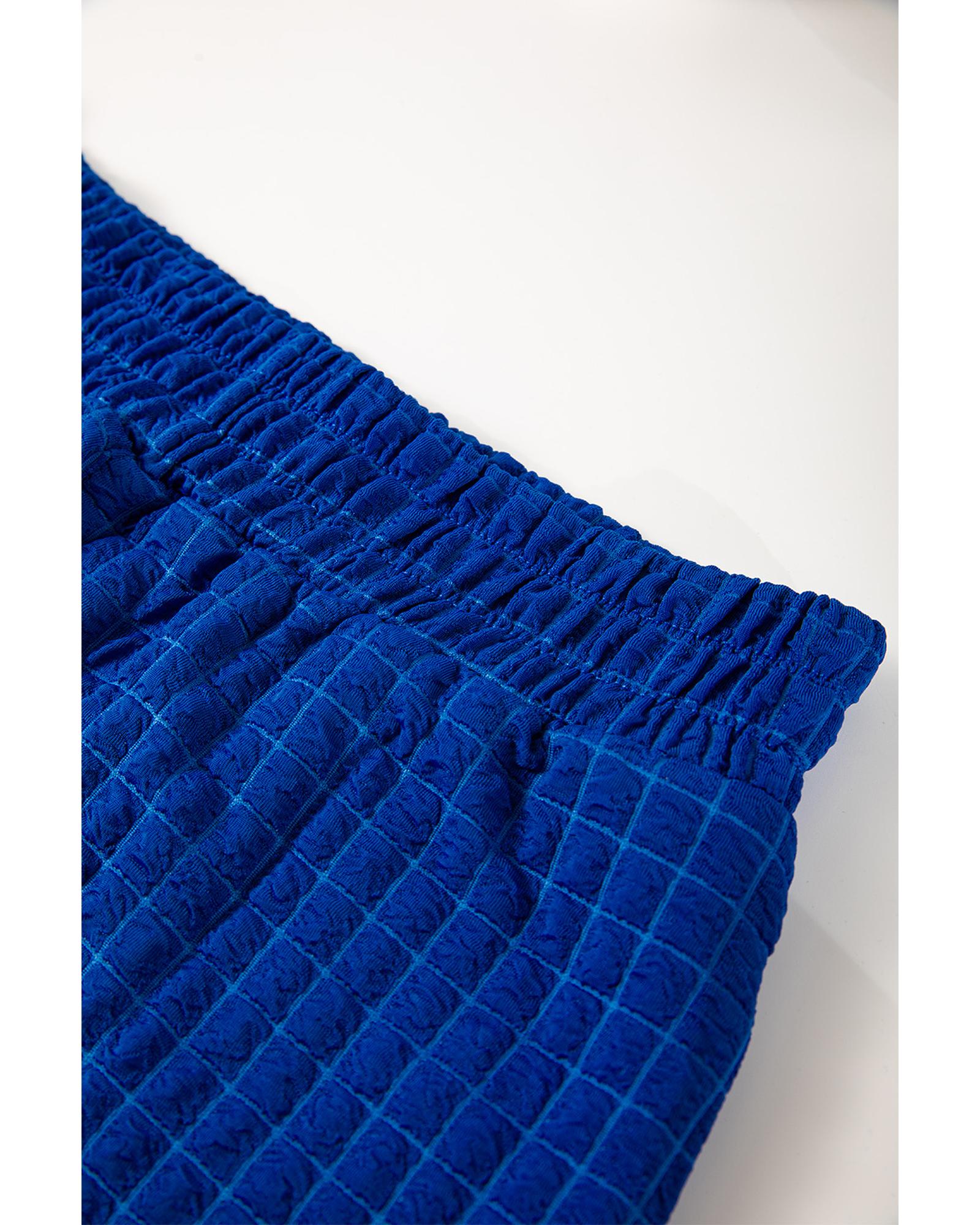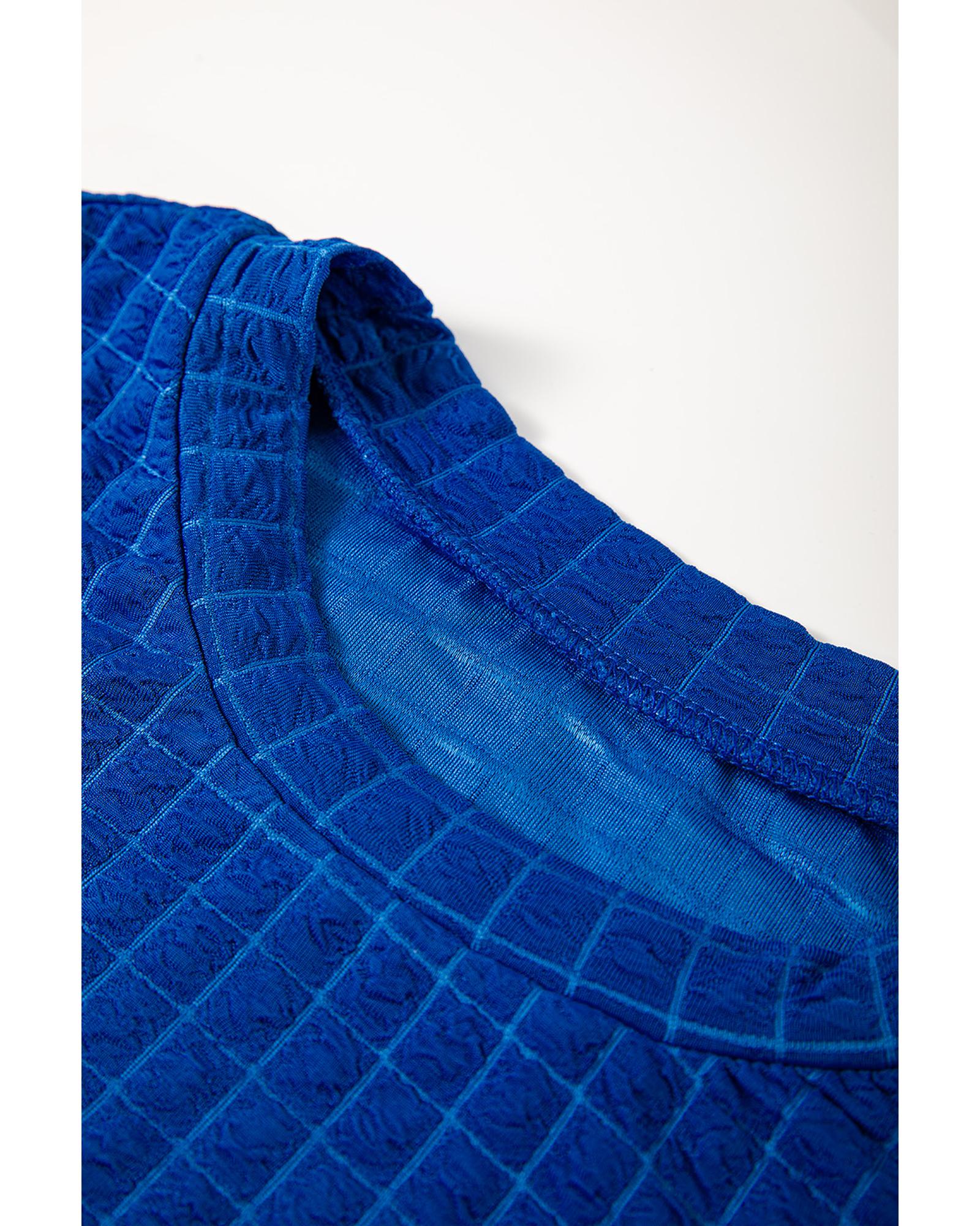 Sky Blue Textured Knit Cap Sleeve T Shirt and Wide Leg Pants Set – L