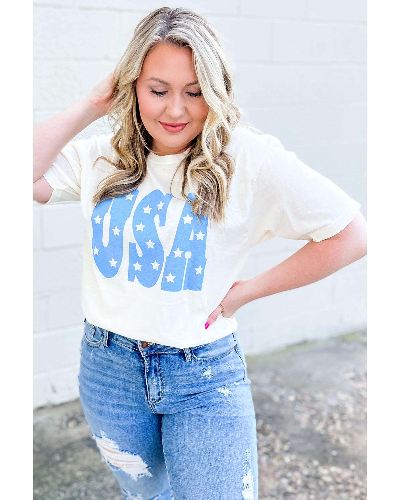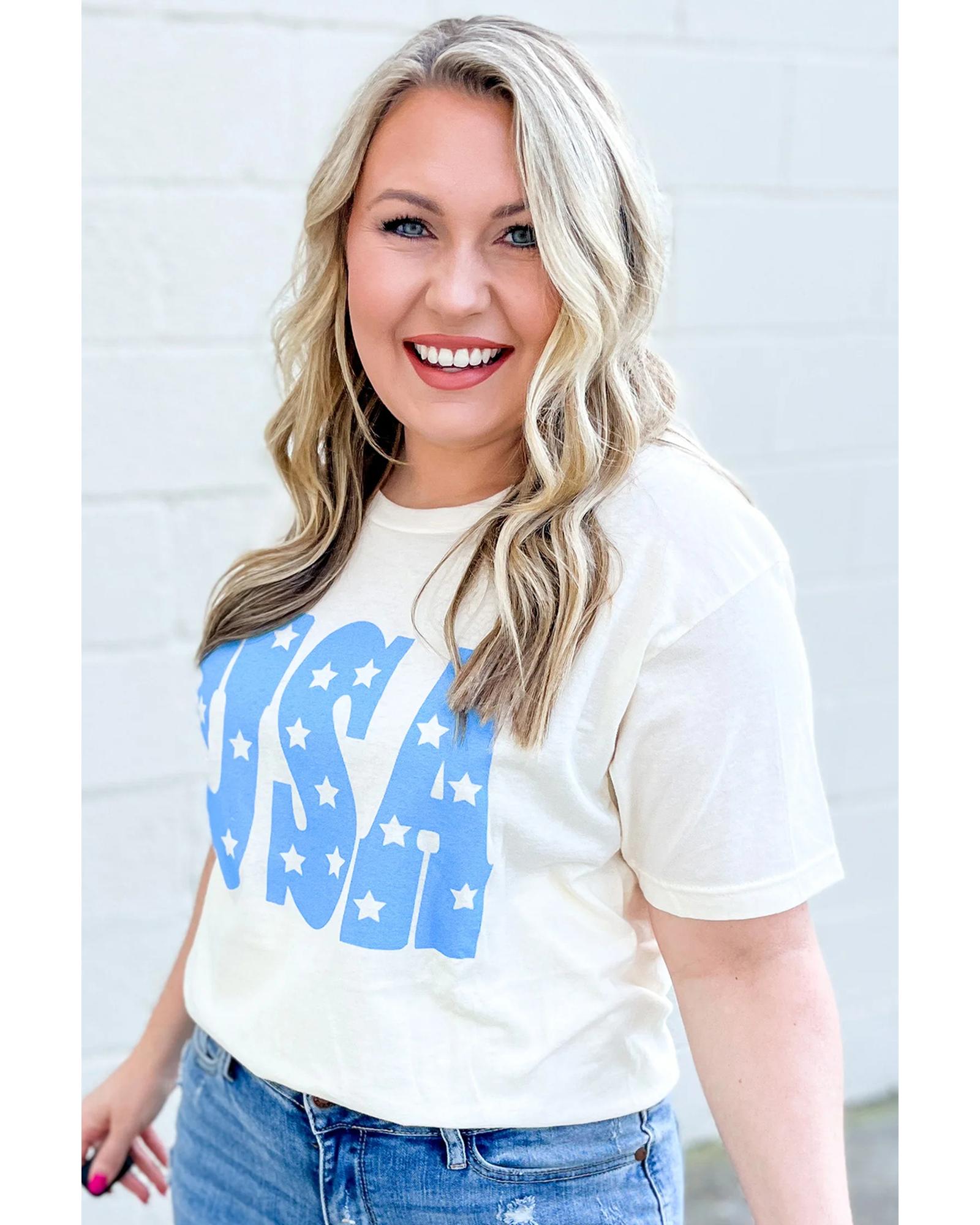 Sky Blue USA Graphic Crewneck Plus Size Patriotic Tee – 1X