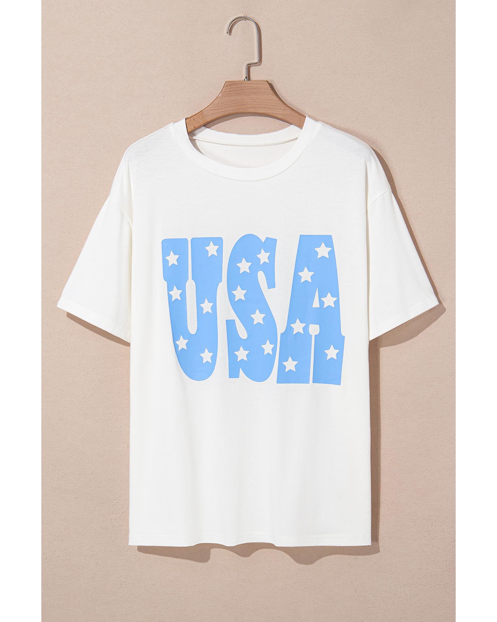 Sky Blue USA Graphic Crewneck Plus Size Patriotic Tee - 2X