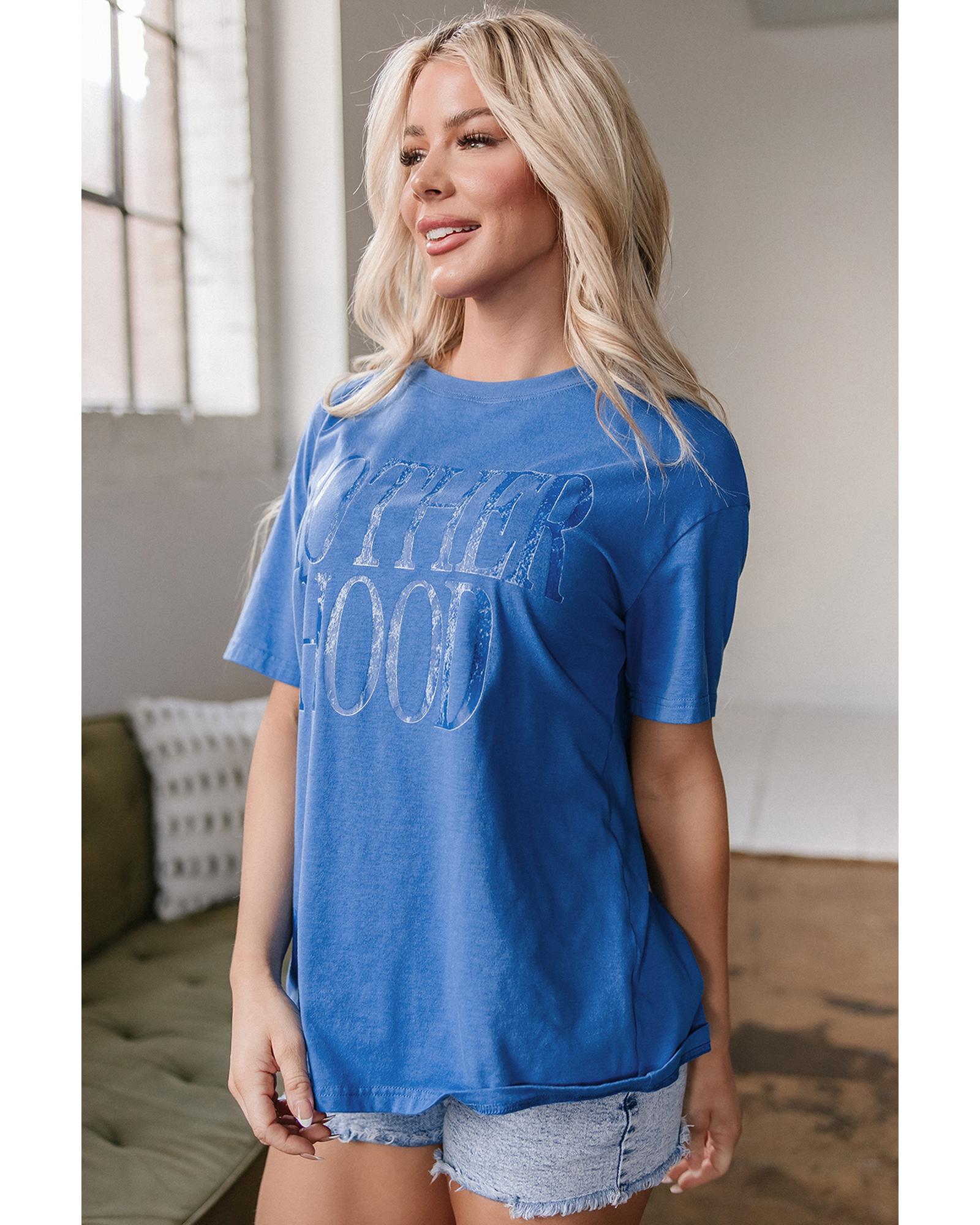 Sky Blue Vintage MOTHERHOOD Letter Graphic T Shirt – XL