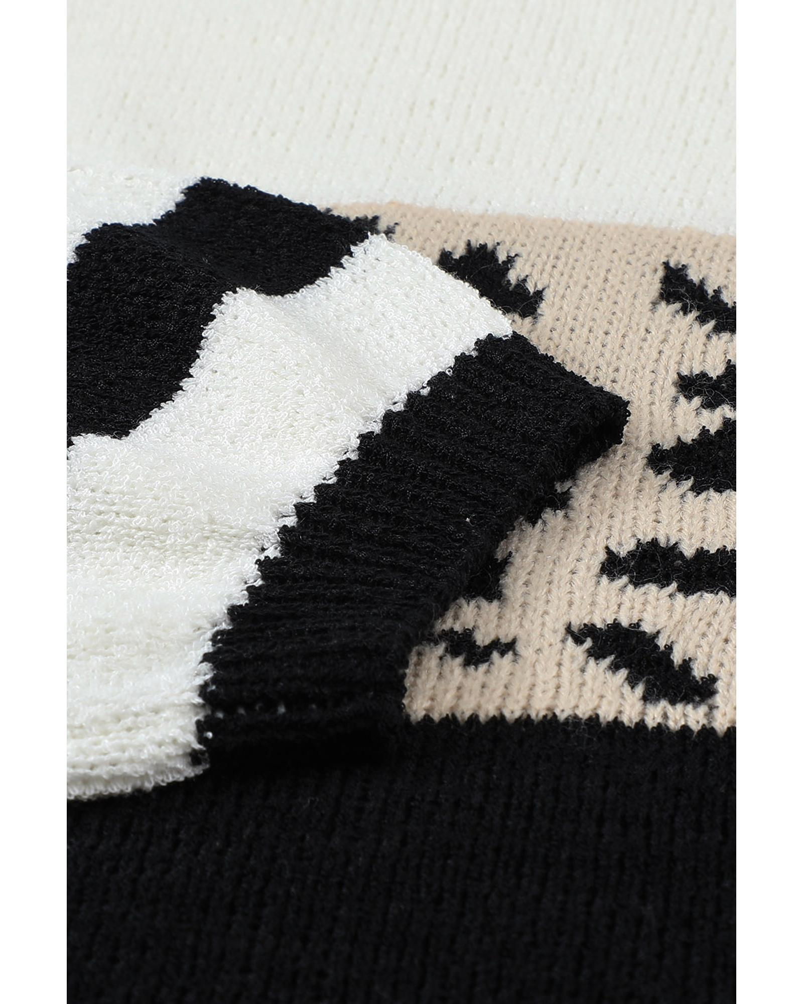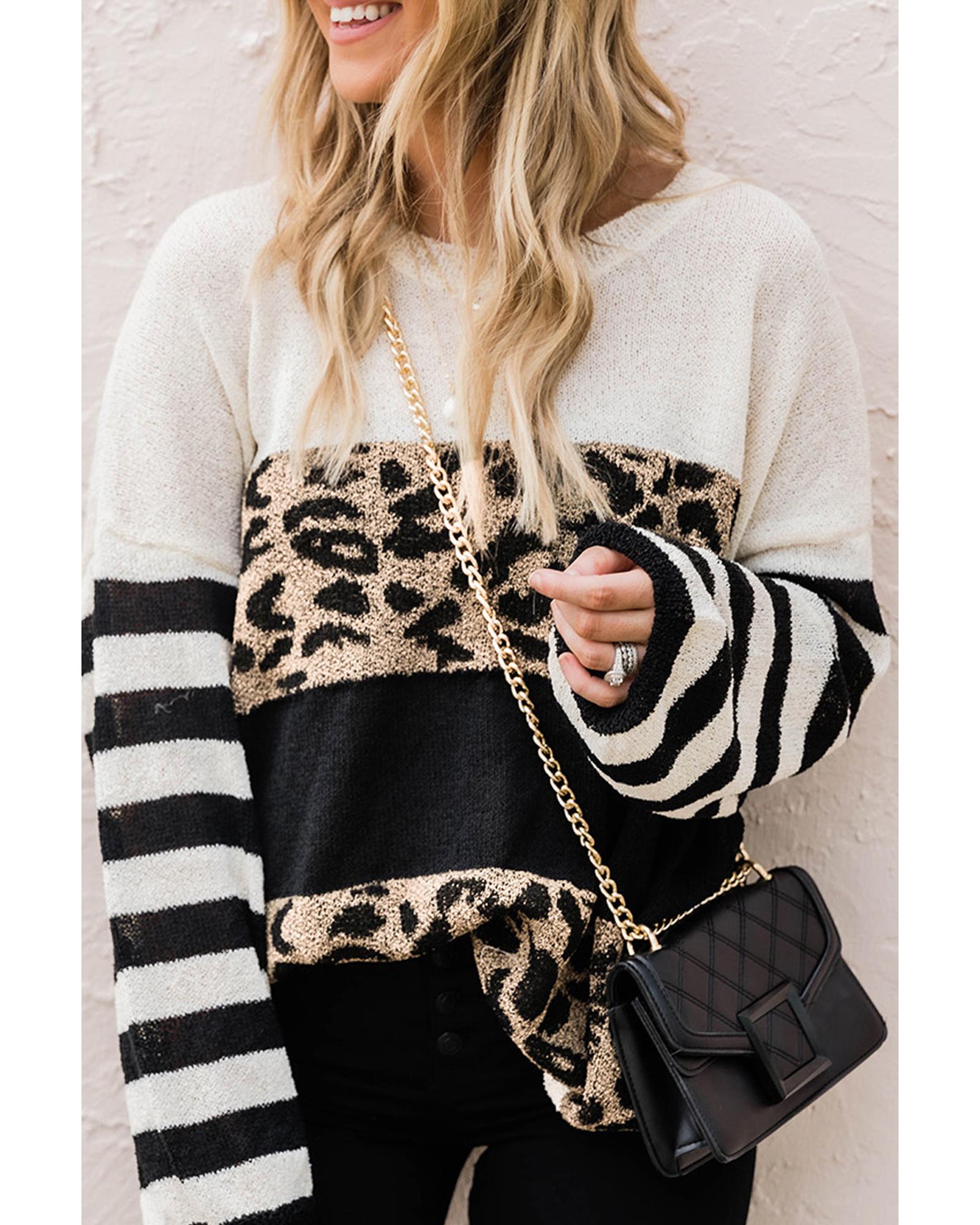 Slouchy Drop-shoulder Leopard Striped Colorblock Sweater – S