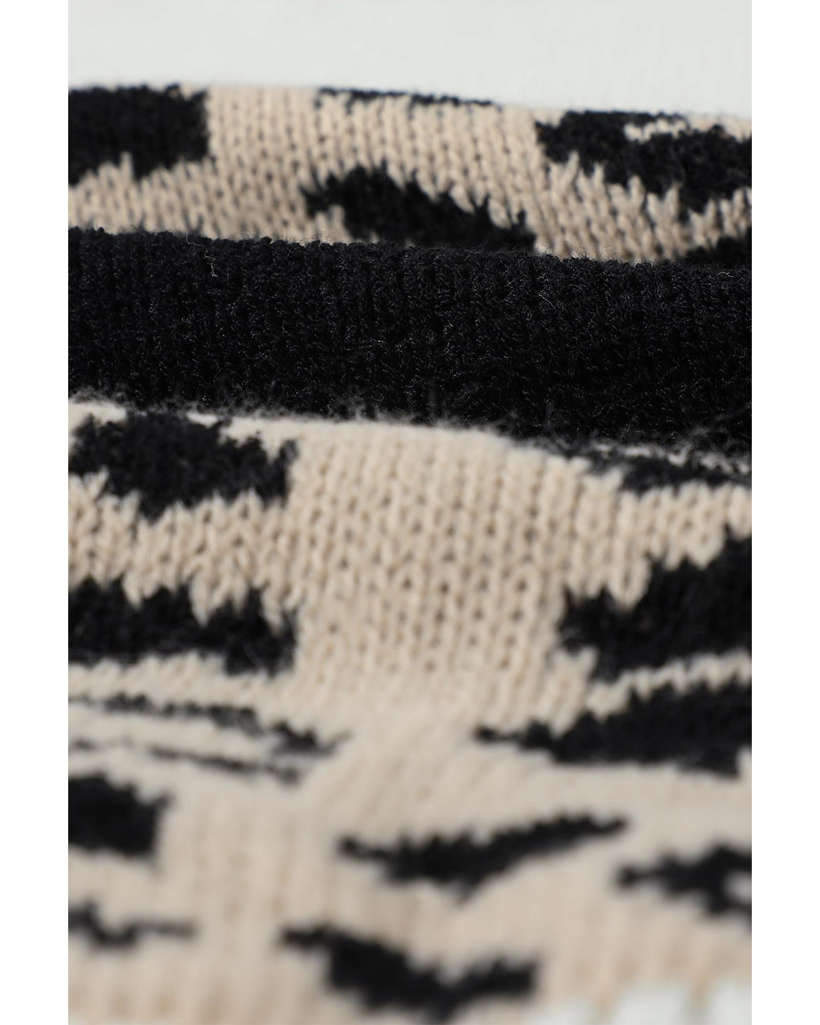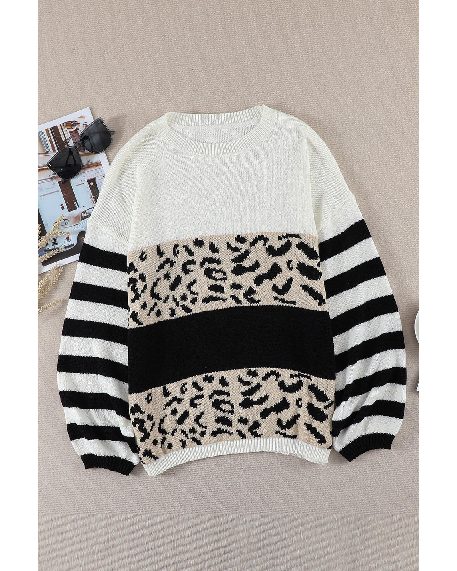Slouchy Drop-shoulder Leopard Striped Colorblock Sweater – XL